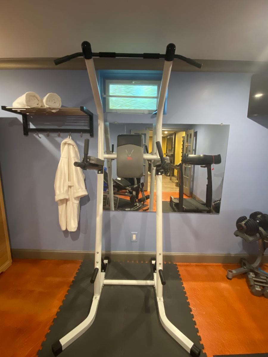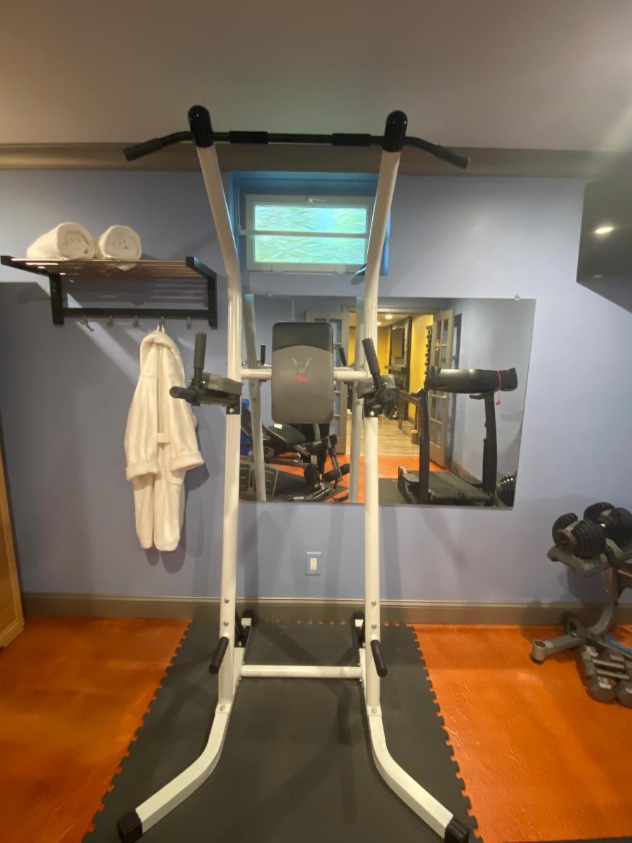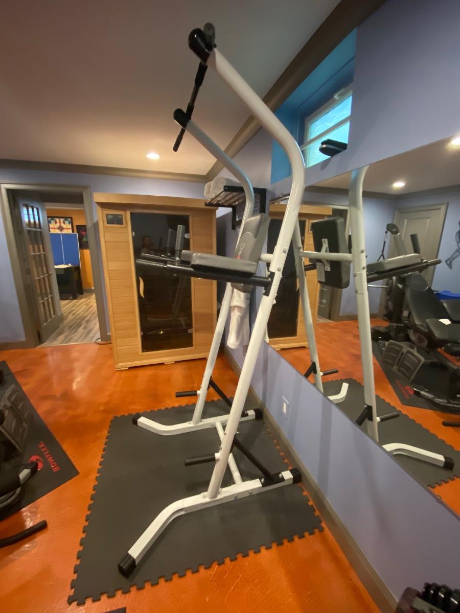 Over 7 feet tall strength training frame for both upper and lower body pull ups. Padded on back, arms and handles.
