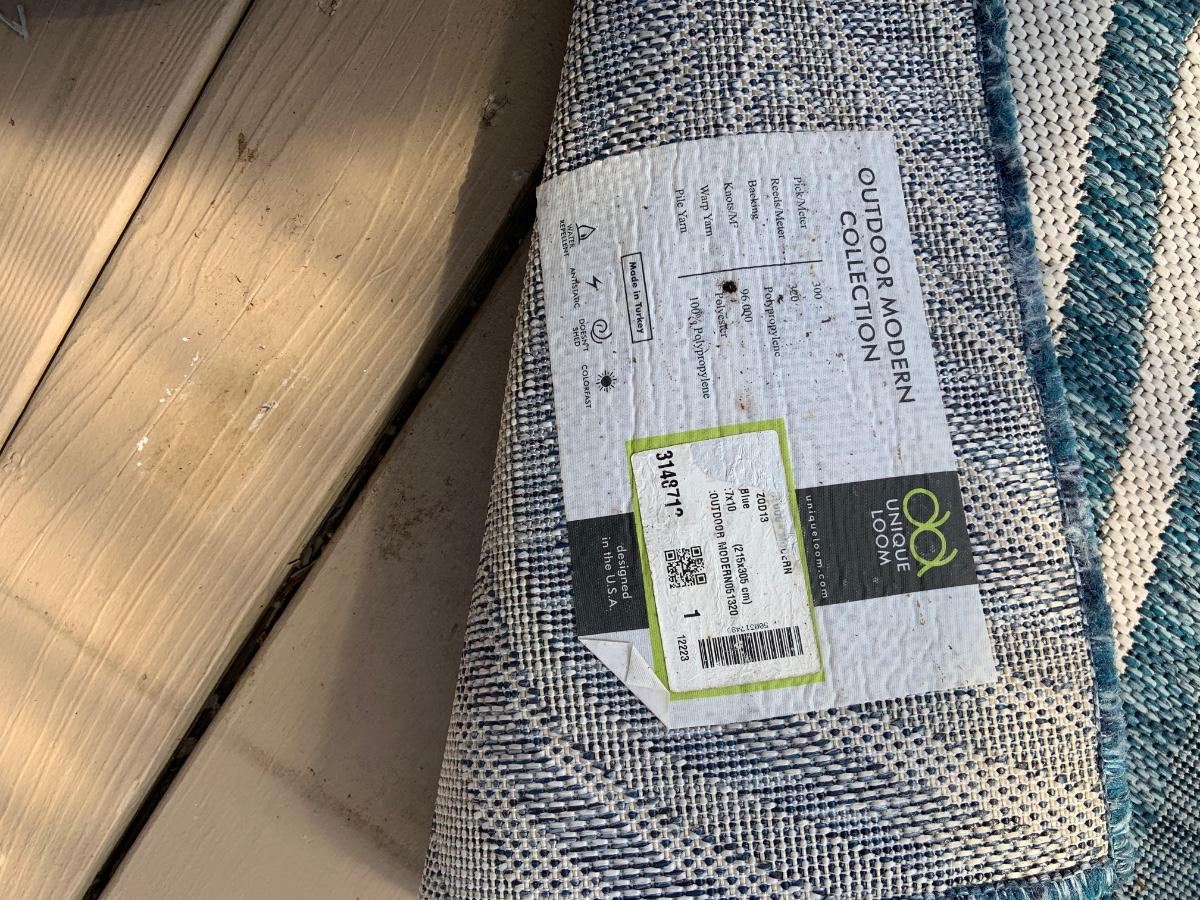 This auction is for 2 of the same outdoor rug in similar condition measuring 7’ x 10’ . Please see all pictures as they are the best representation of the items. The pictures show condition, measurements if taken, and what is included in the lot. Due to the large amount that we photograph and the time frame, we are not always able to take measurements. All items unless noted, are pre-owned and have been used. If you purchased furniture, you must bring help. We do not allow one person to carry large furniture out on their own. Bring help, tools and a truck for the safety of our client’s homes, and your personal safety. Any damages that result to the property including walls, and floors due to moving of the furniture will be charged to the buyer. Company policy. Thank you.