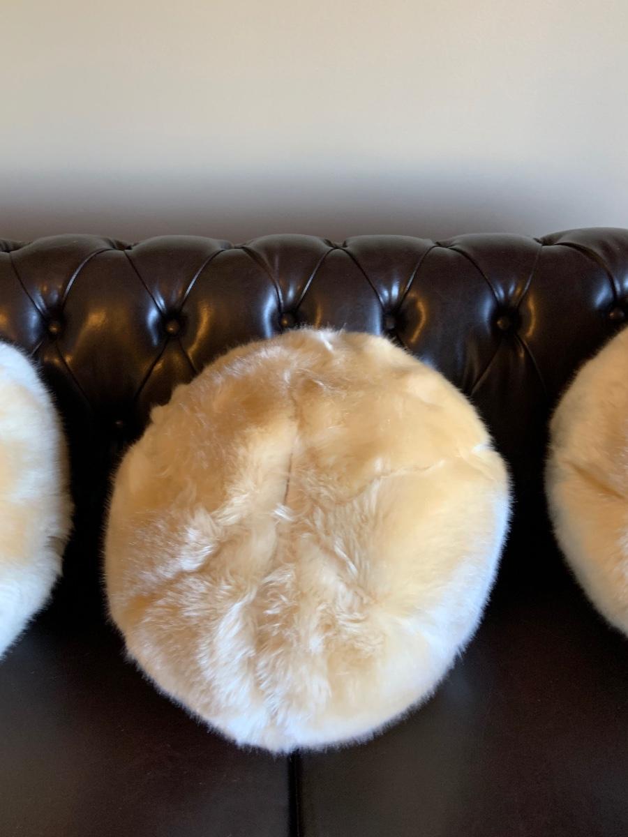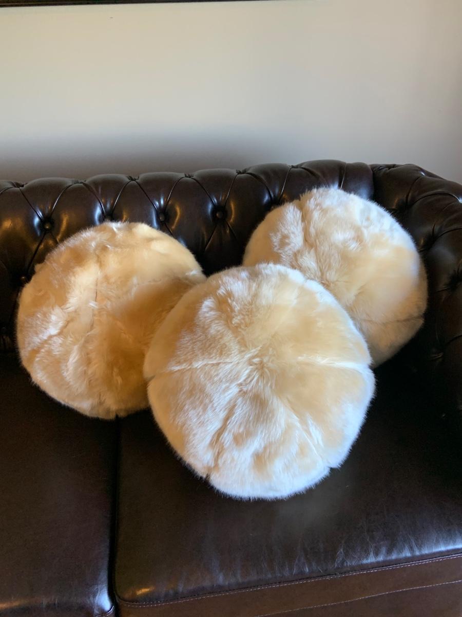 LOT:69G: Faux Fur Accent Pillows: 3 Ball Shaped