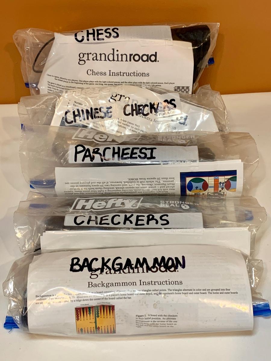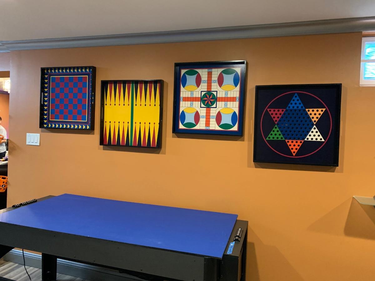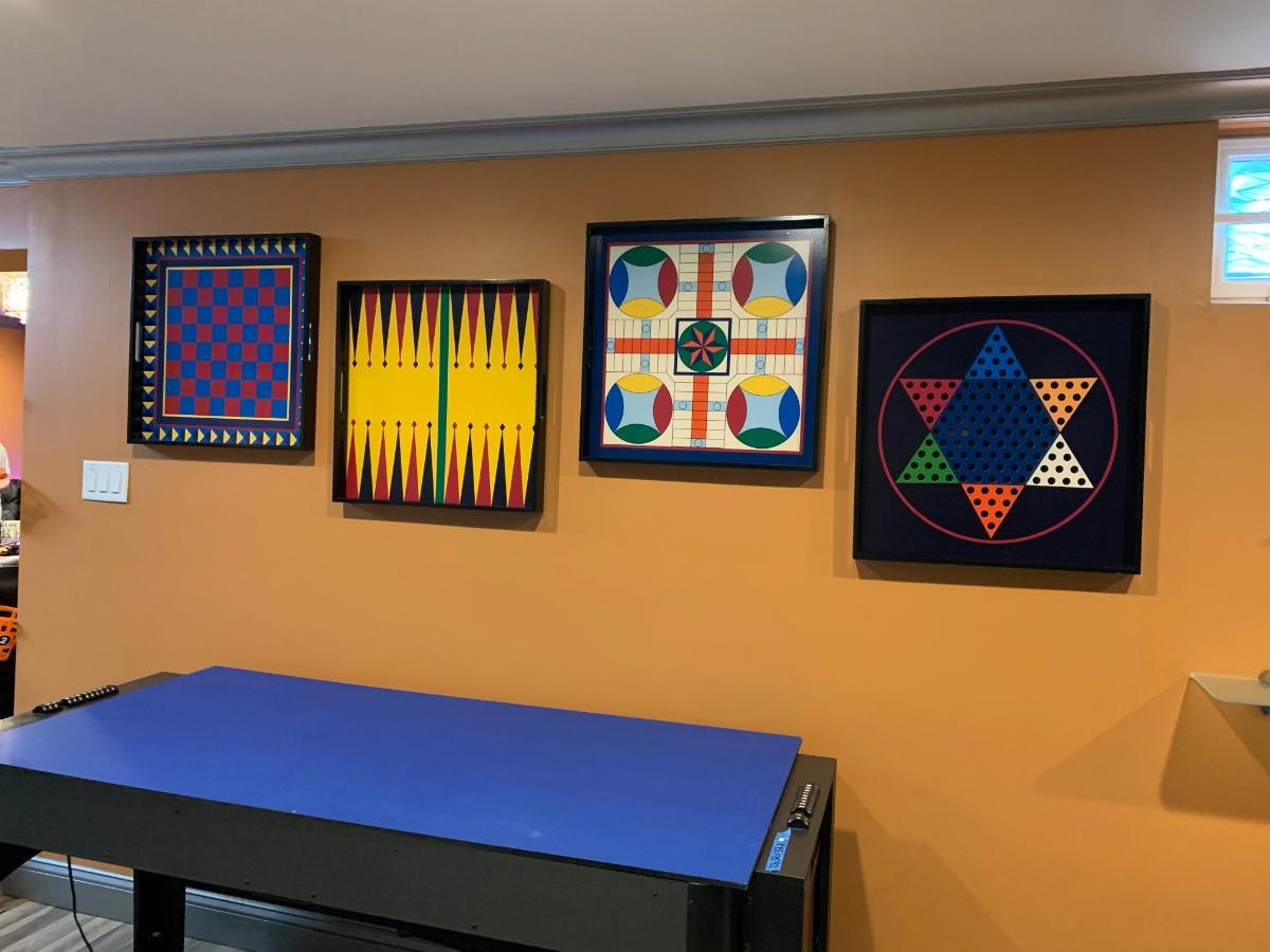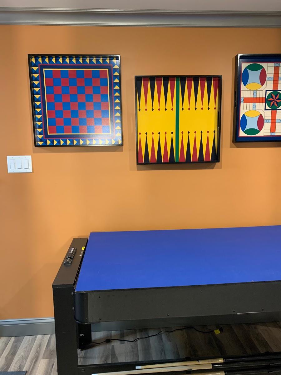 Used as decor in a "game room" but all boards have the instructions and pieces