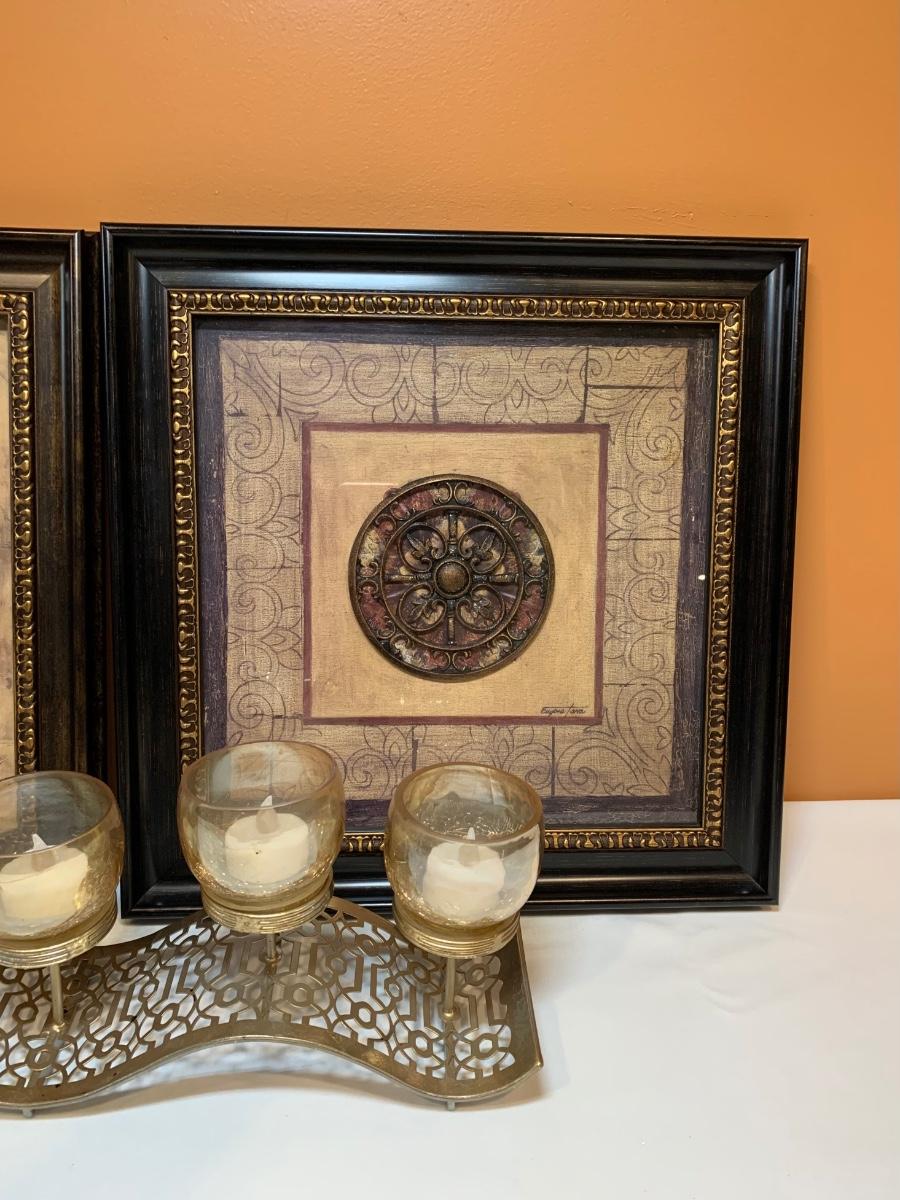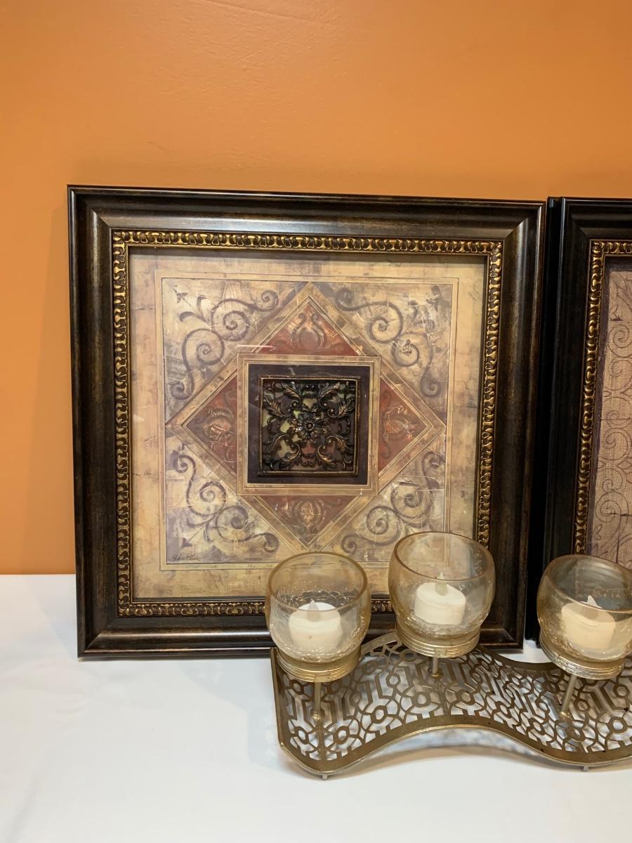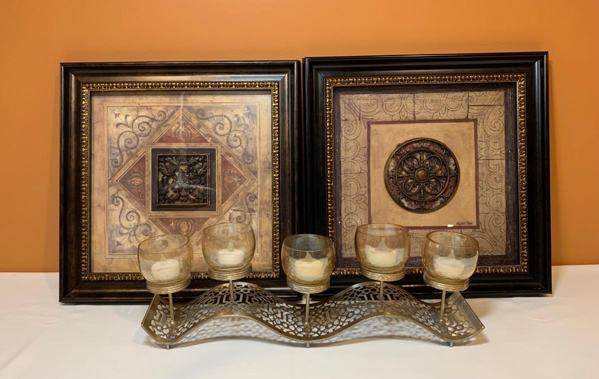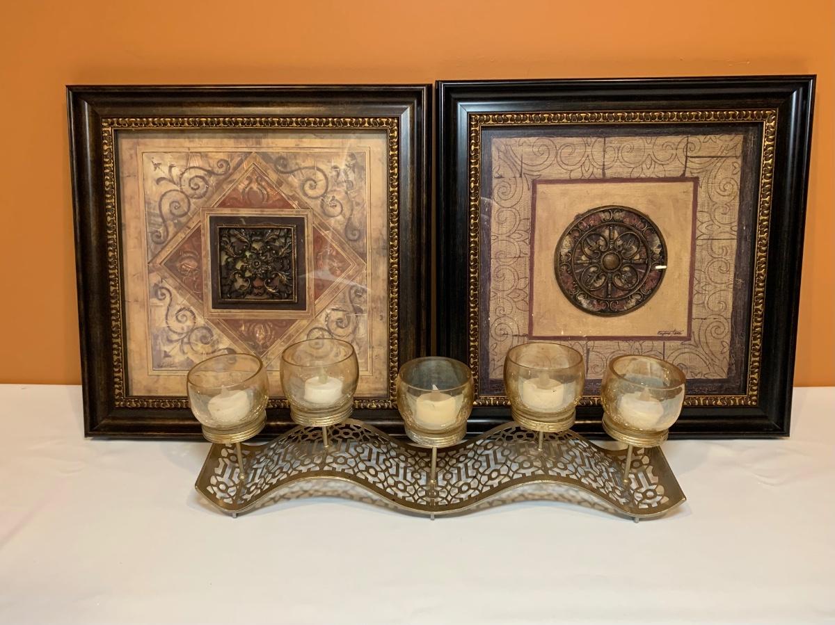 LOT 83R: Home Decor: Signed Framed Wall Art & Candle Holder