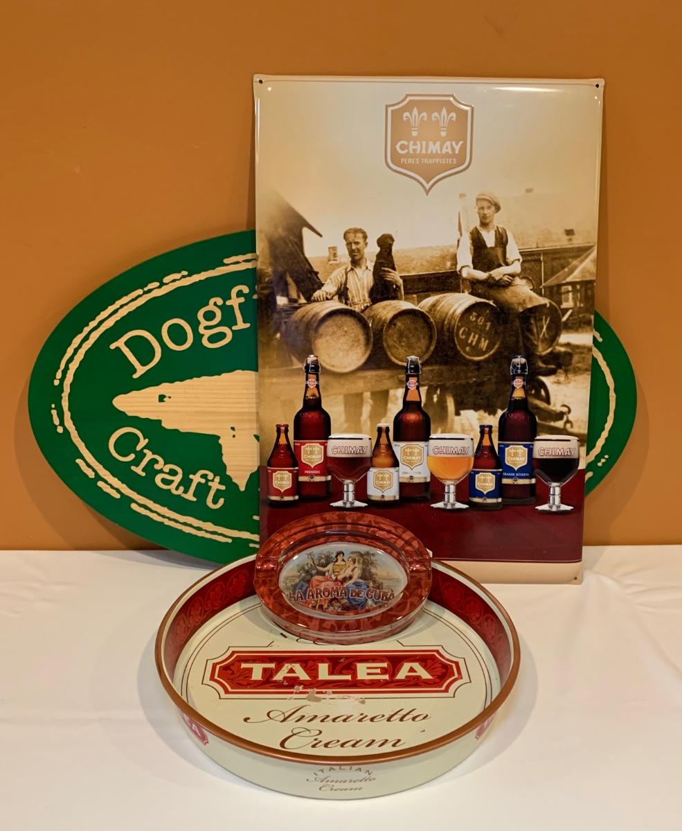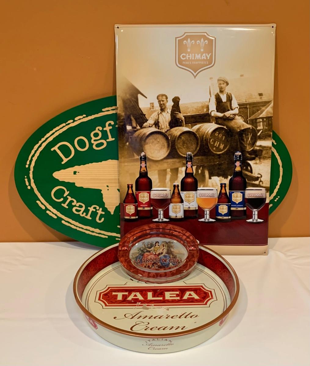 LOT 90R: Talea Tray,  Dog Fish Head & Chimay Bar/Pub Signs & La Aroma De Cuba Ashtray