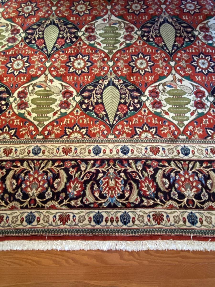 This one is a rare Find! Authentic Persian rug made in the 1960’s. Vibrant colors and thick lush texture. Large Area rug measures 9.5x12. Rug has 360 knot density made by sheeps wool. Hand knotted and hand woven. Appraised 1/16/06 for 12,000 and includes appraisal paperwork.