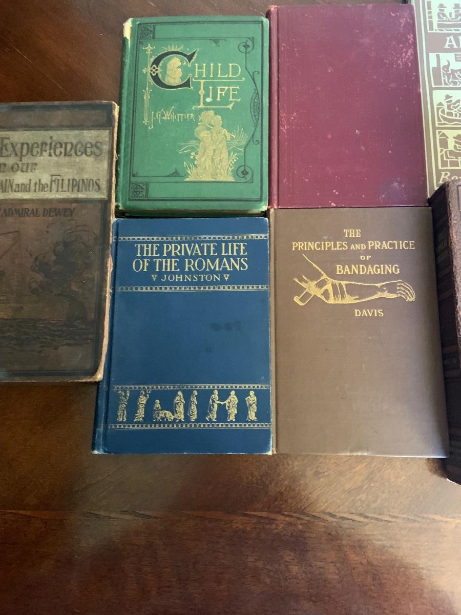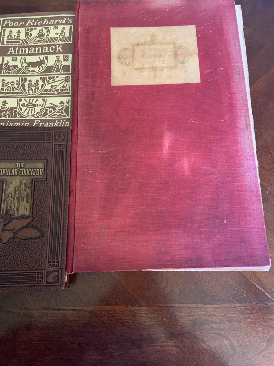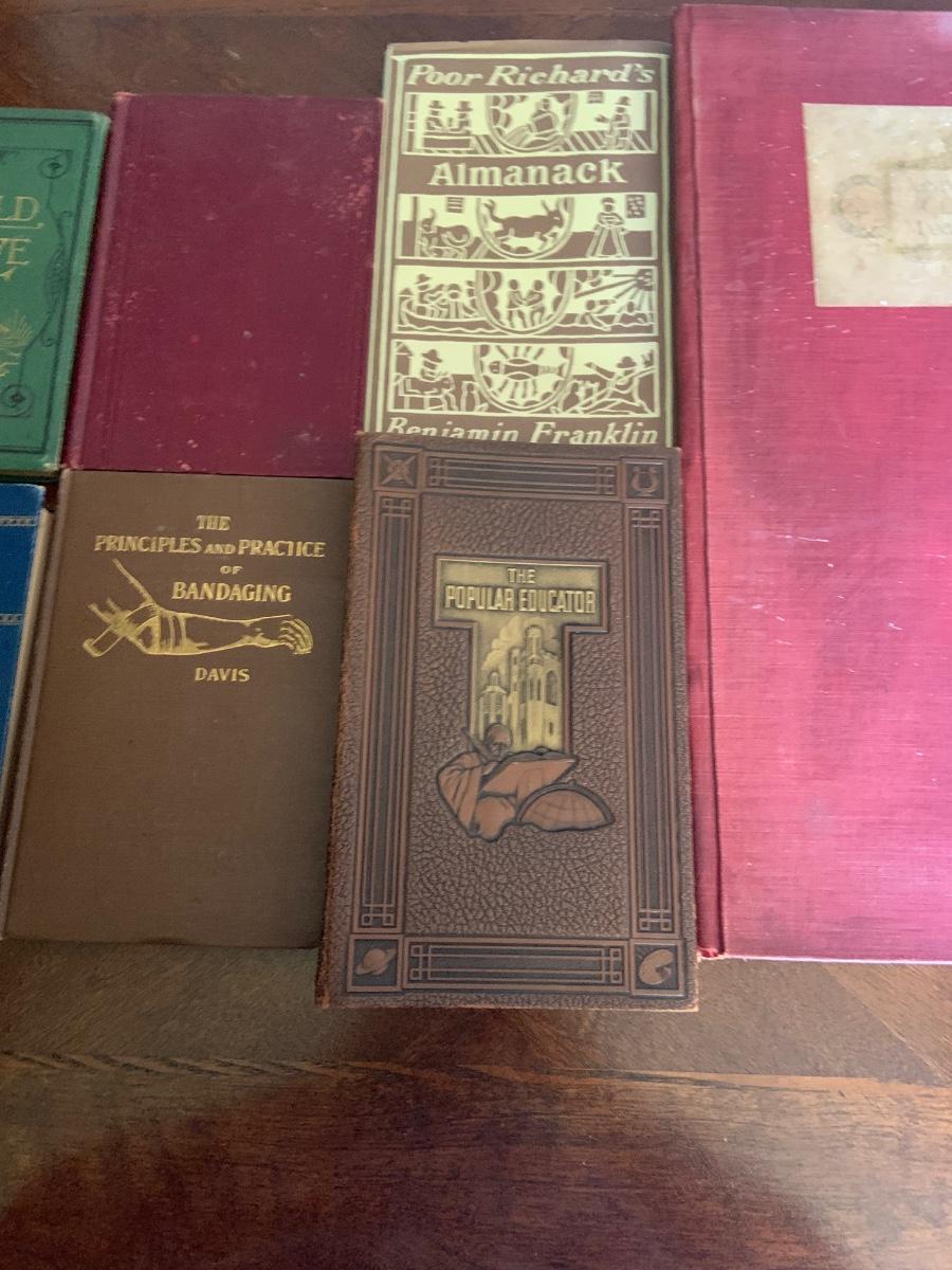This lot is for 8 Vintage Books Universal Manuscripts, Poor Richards Almanac by Franklin, Principals and Practice of Bandaging by David, Bandaging By Whiting, Childs Life by Whitman, Private Lives of the Romans by Johnston Exciting Experiences in our War with The Spain and Filipinos by Everett and The Popular Educator Please see all pictures as they are the best representation of the items. The pictures show condition, measurements if taken, and what is included in the lot. Due to the large amount that we photograph and the time frame, we are not always able to take measurements. All items unless noted, are pre-owned and have been used. If you purchased furniture, you must bring help. We do not allow one person to carry large furniture out on their own. Bring help, tools and a truck for the safety of our client’s homes, and your personal safety. Any damages that result to the property including walls, and floors due to moving of the furniture will be charged to the buyer. Company policy. Thank you.