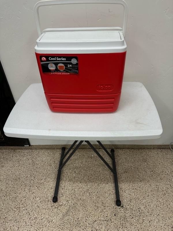 Plastic lifetime, folding table and igloo 16 quart cooler