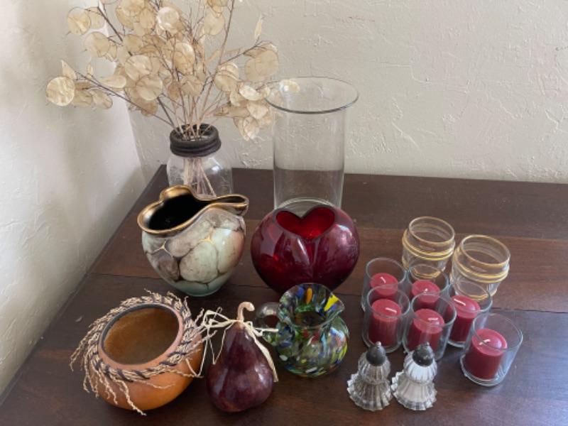Lot 78BR. Collection of vases, bowls, gourds, votives, salt and pepper shakers--$125
