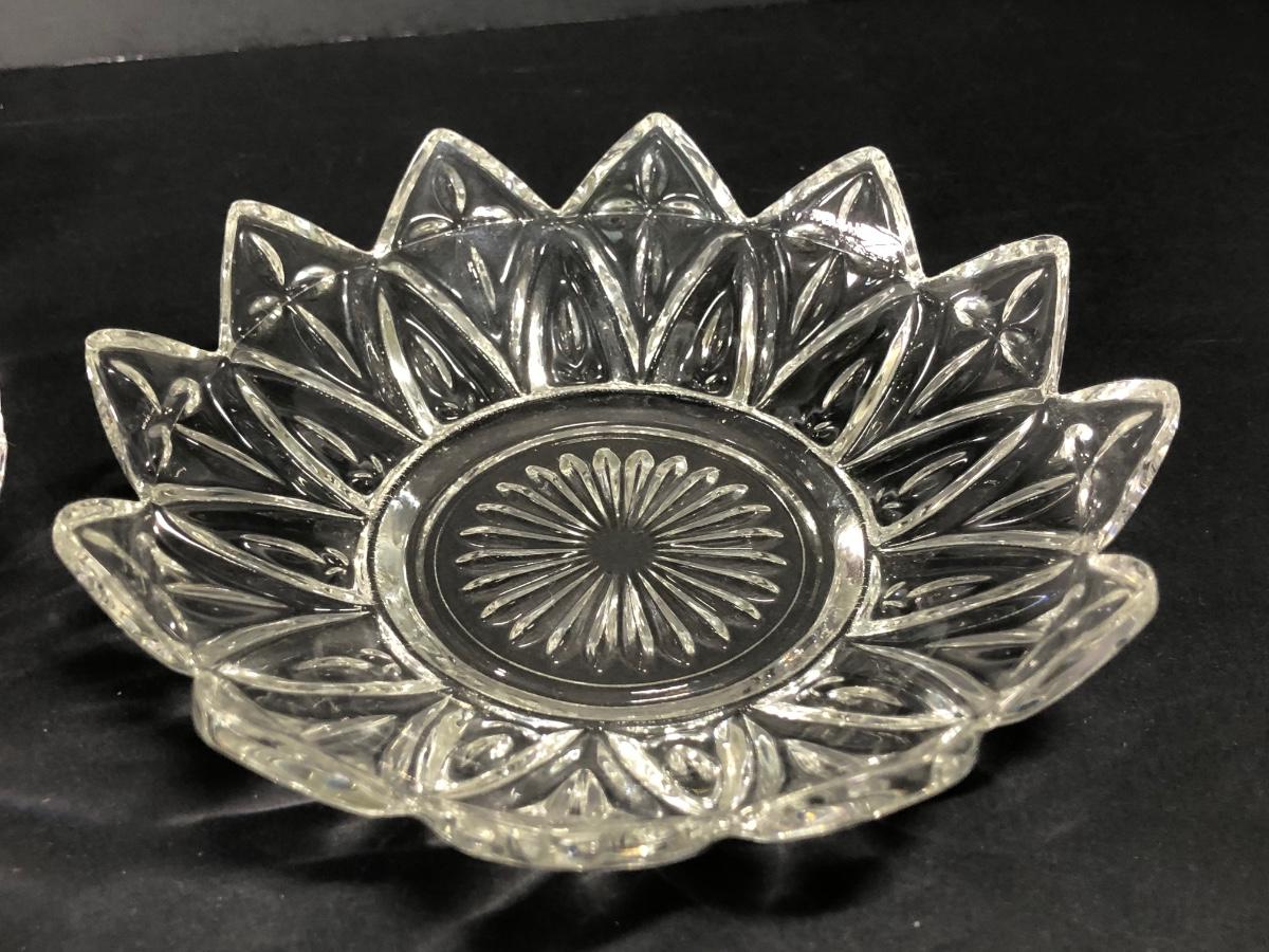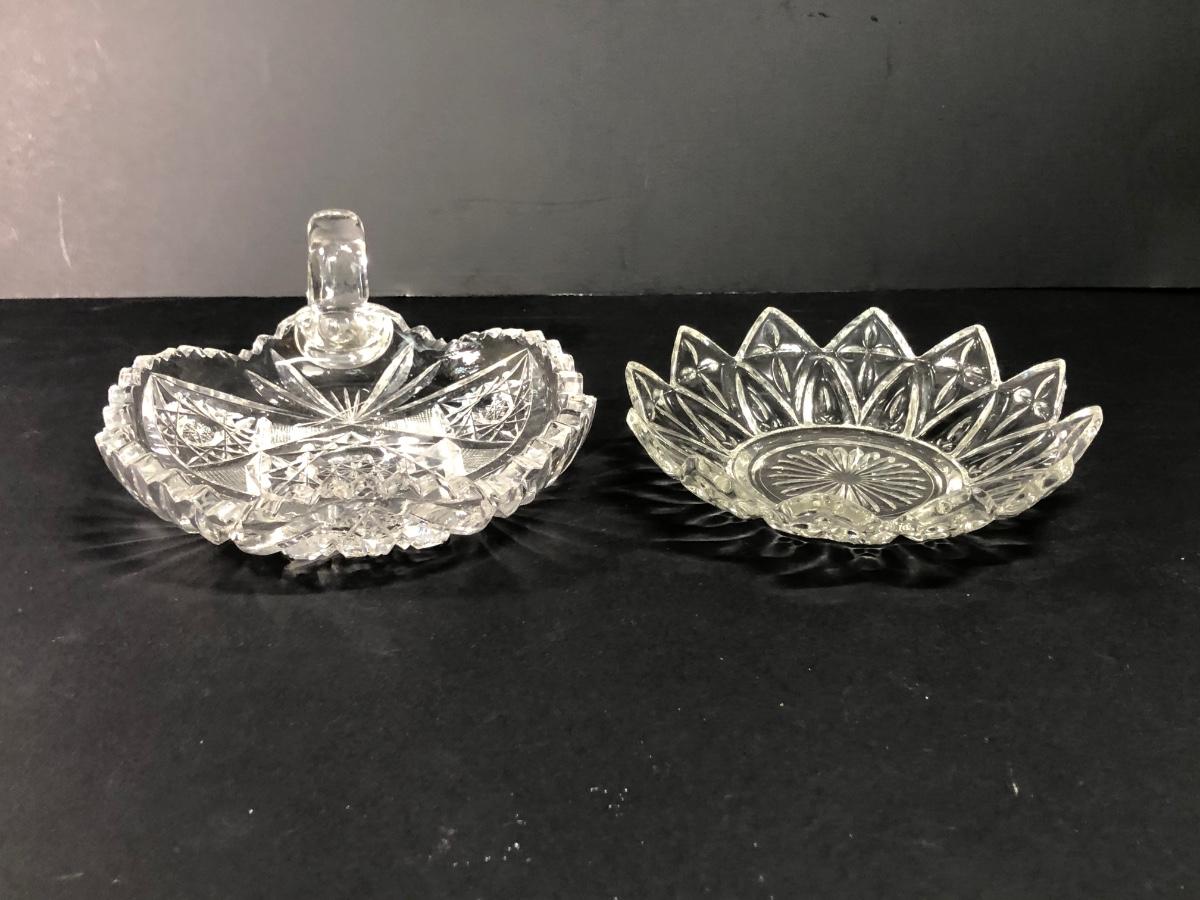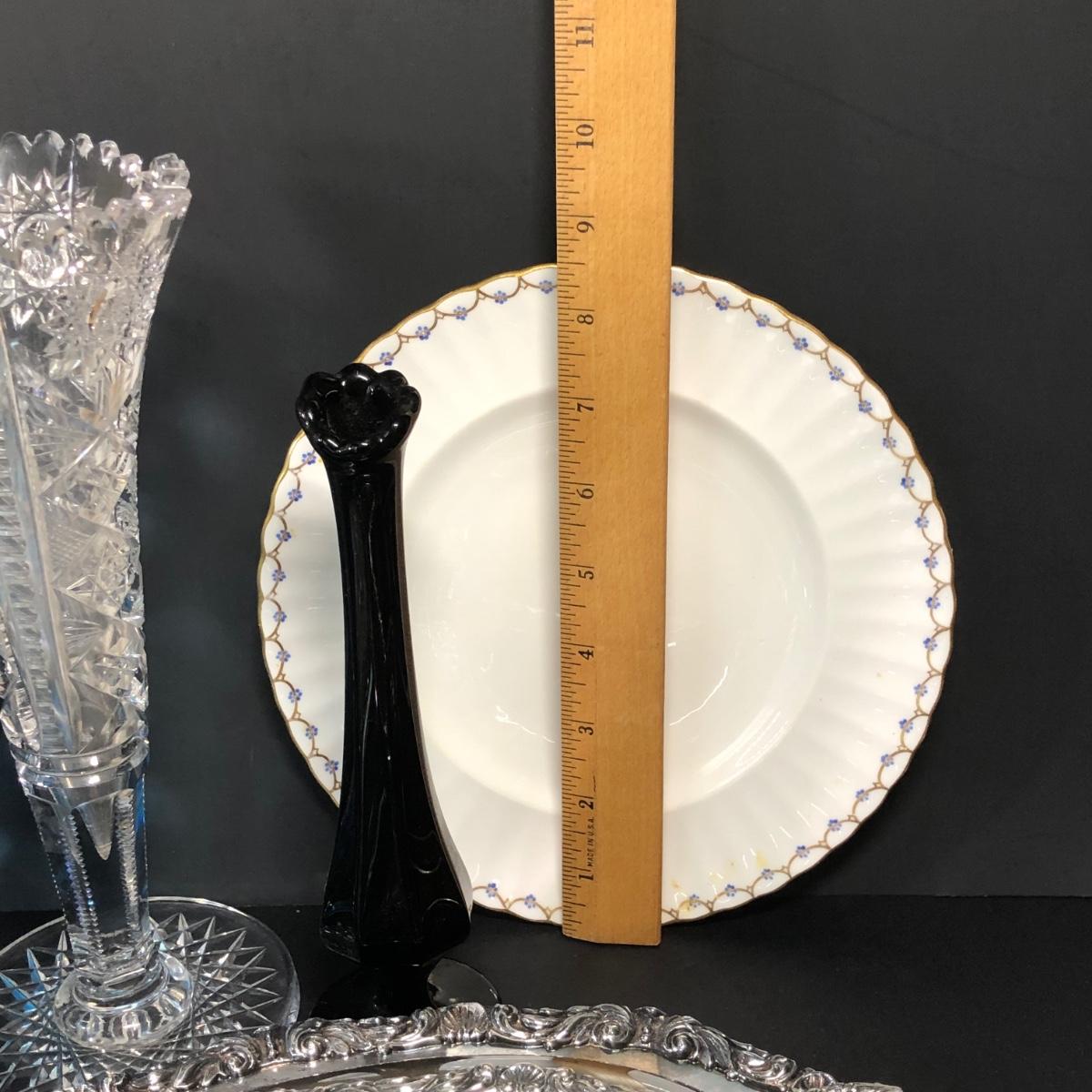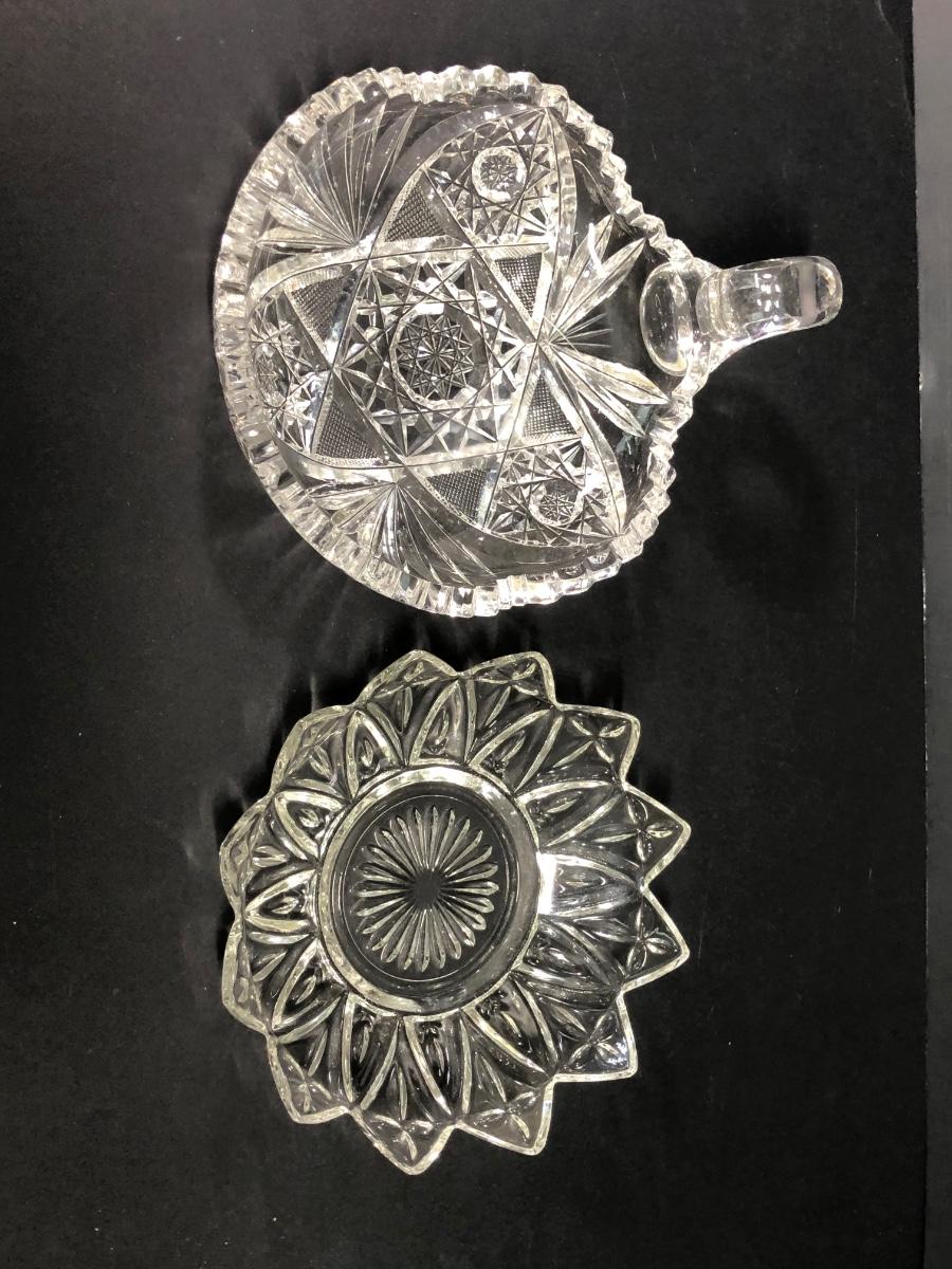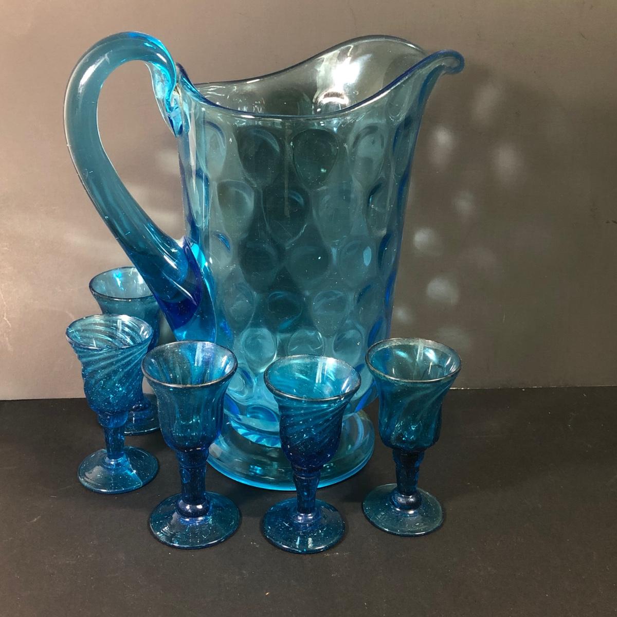 LOT 78M: Crystal Dishes, Blue Glass Pitcher w/ Matching Glasses, Silverplate Chaffing Dish & More