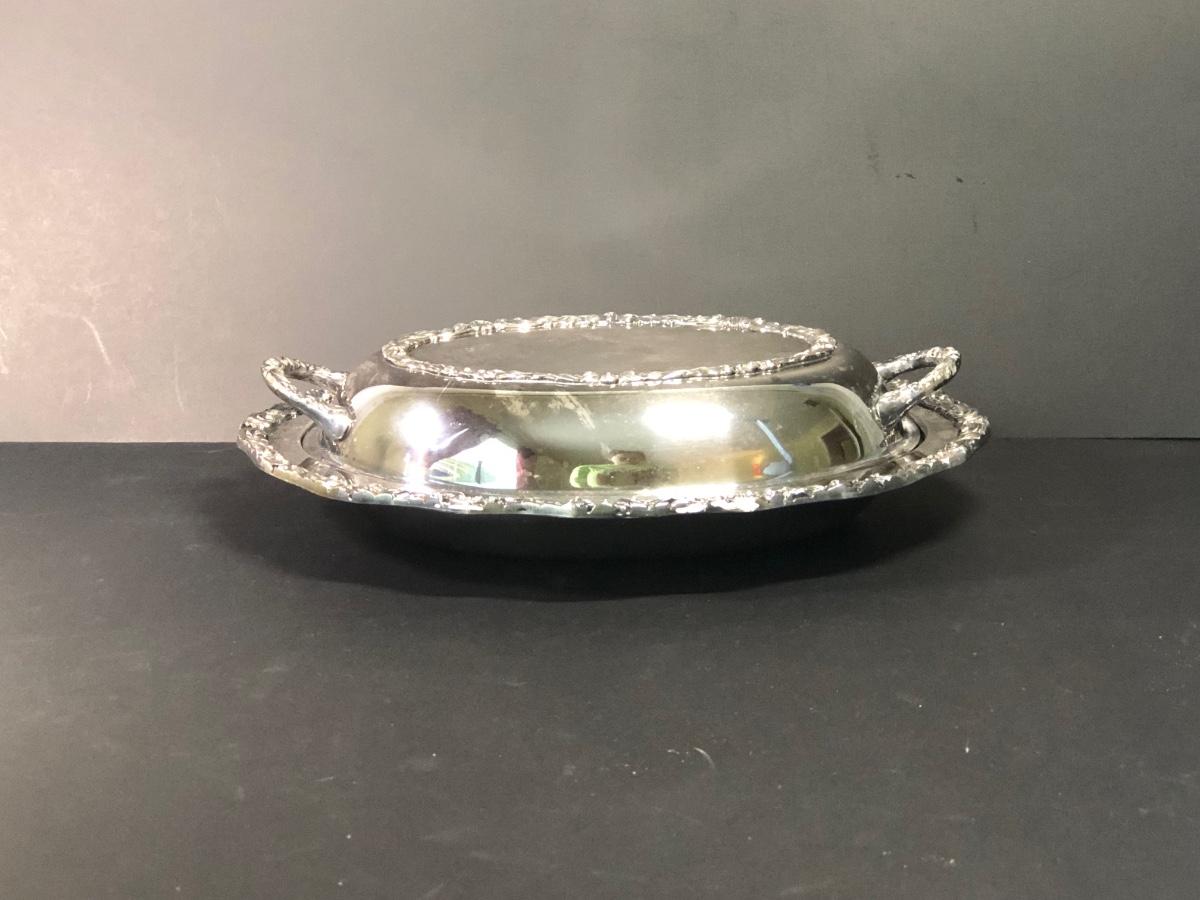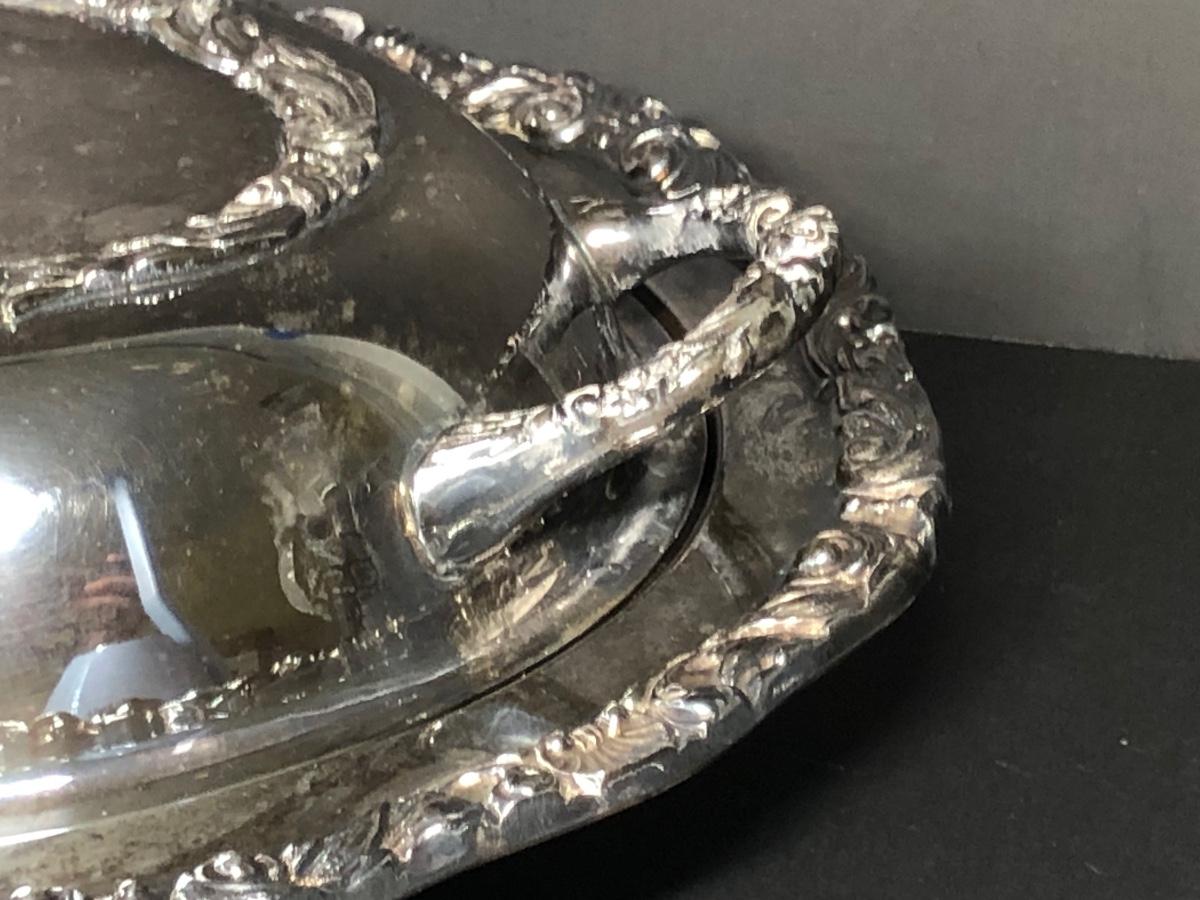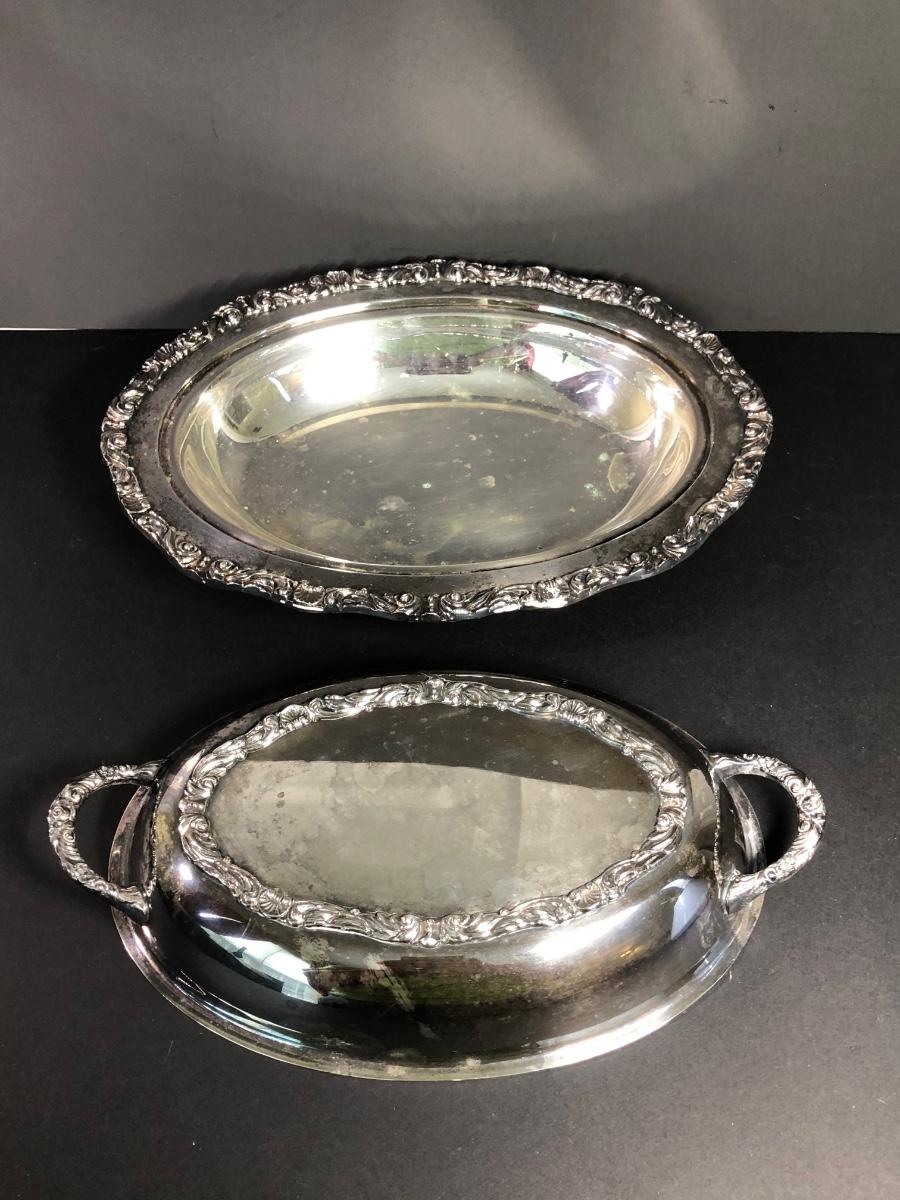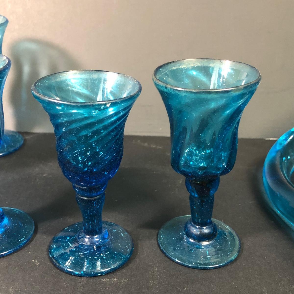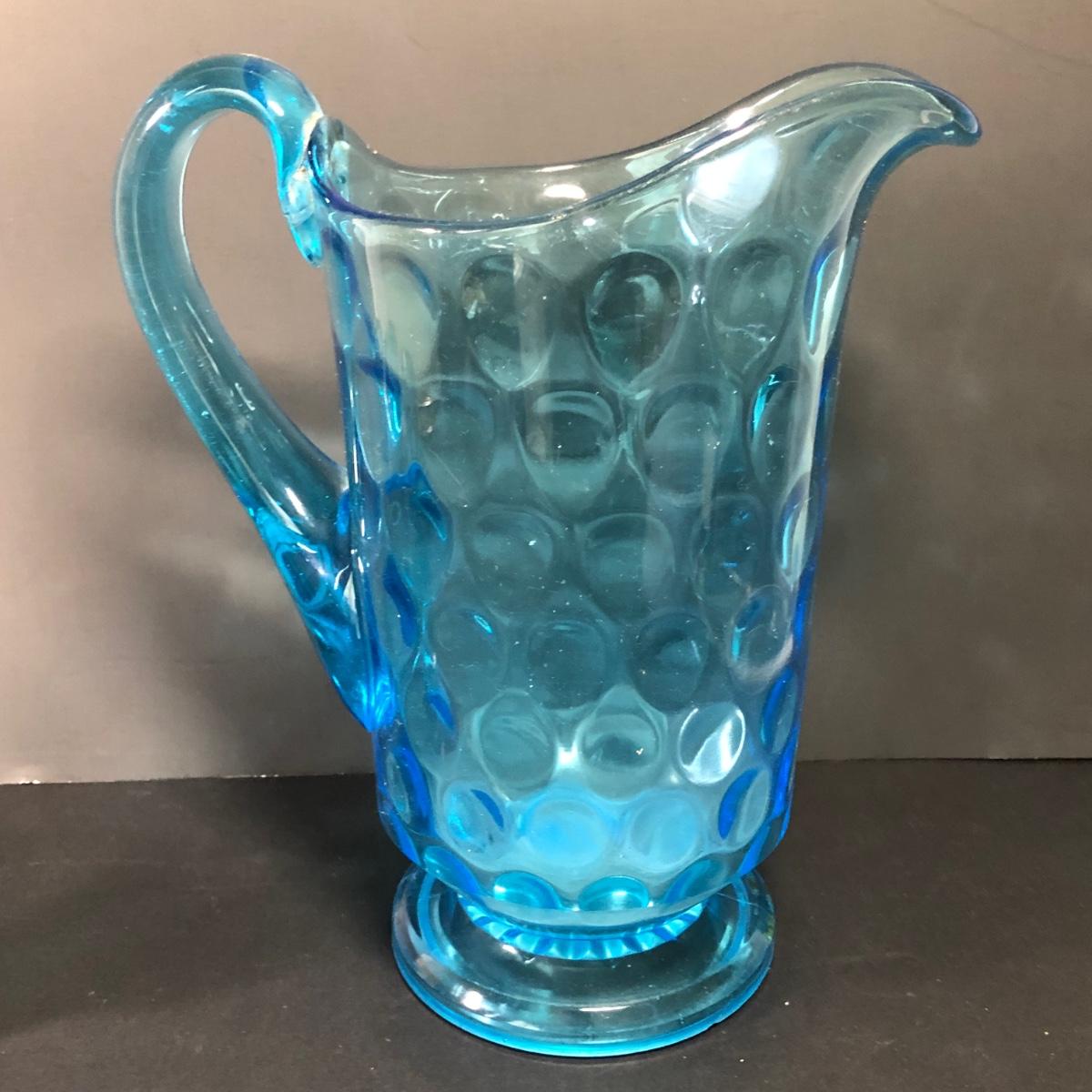 LOT 78M: Crystal Dishes, Blue Glass Pitcher w/ Matching Glasses, Silverplate Chaffing Dish & More
