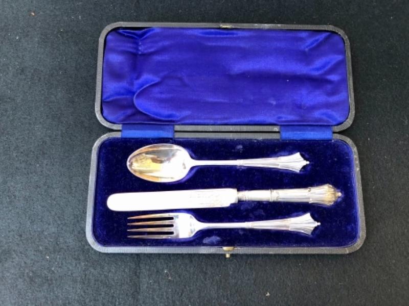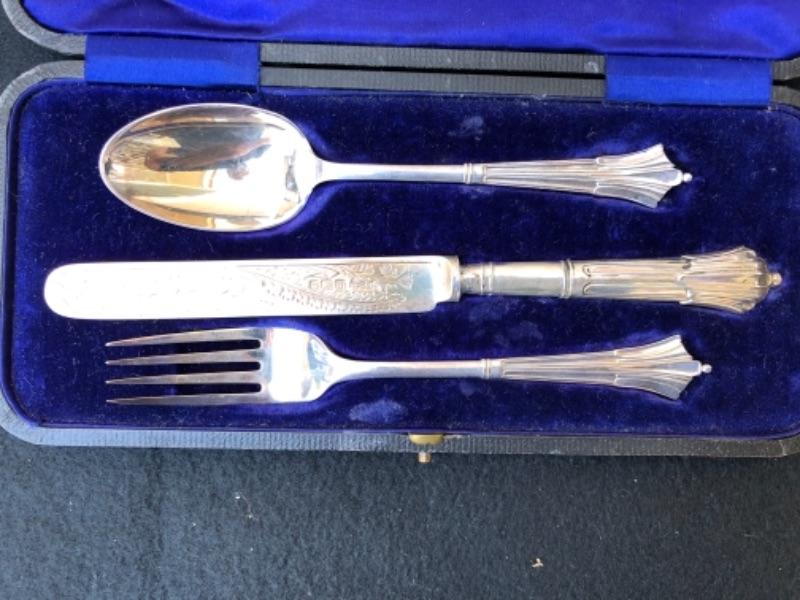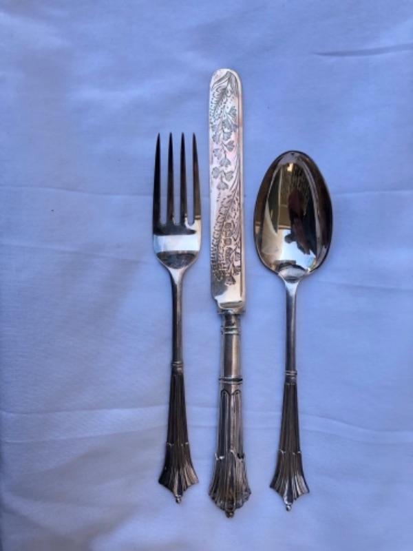 Lot 78S. Antique Sterling Silver Flatware Set, Albany Pattern, William Gallimore & Son, Sheffield, 1905, made in England, Art Nouveau style, Branded W.G. & S, in fitted case “” $32.50