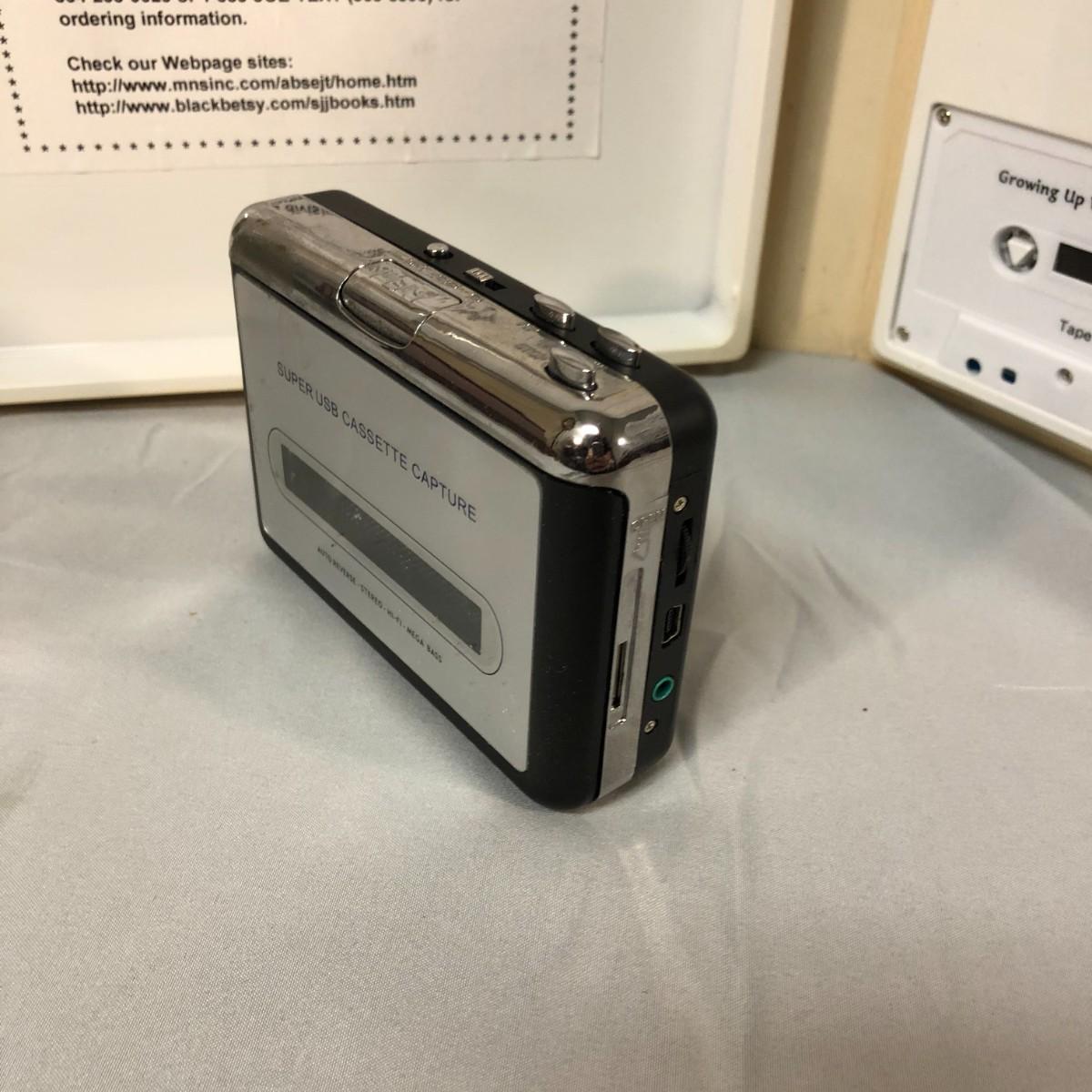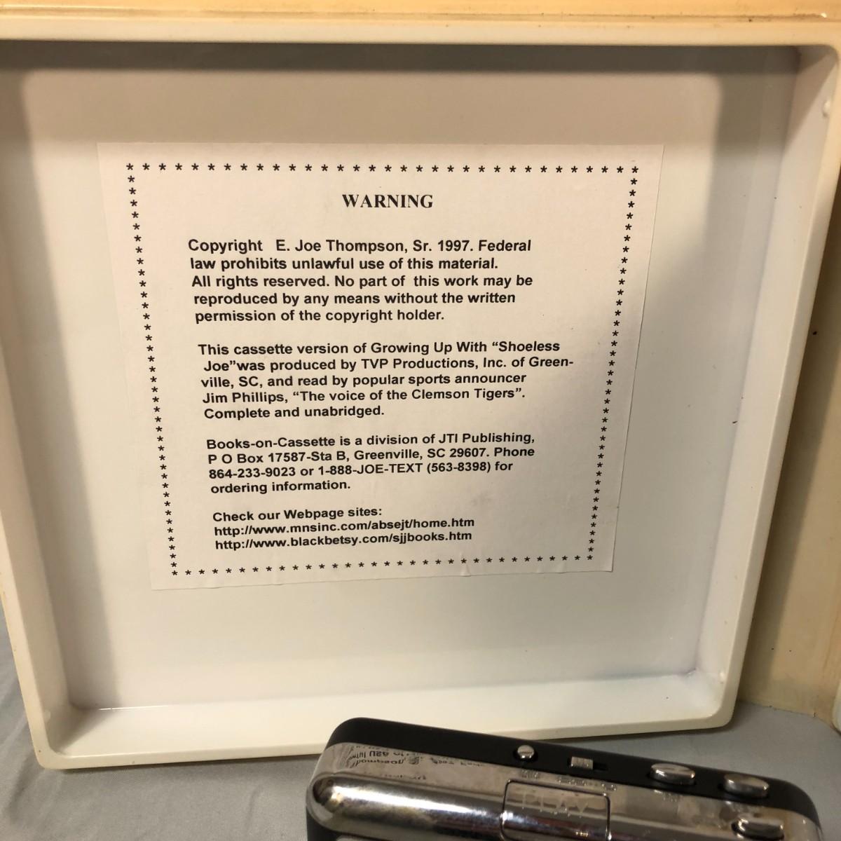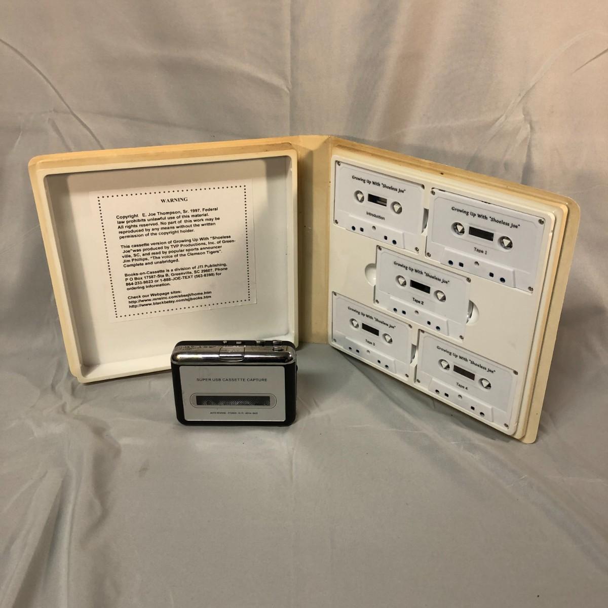 This is a cool "book on tape" that is interviewing people for first-hand memories of their experiences with baseball great Shoeless Joe Jackson. Don't have a cassette player? That is also part of this lot and this is a moden one - check out the USB port on the side!