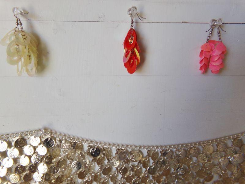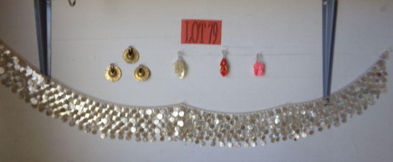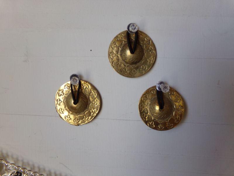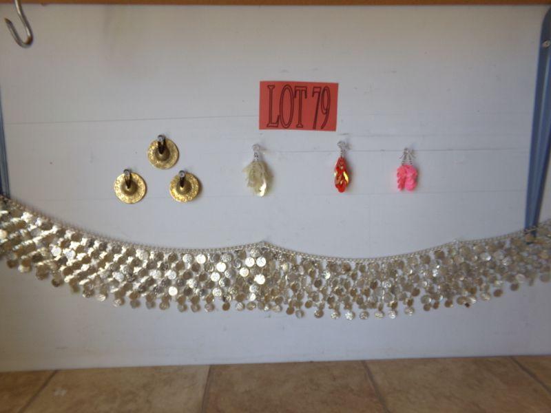 Belly Belt, 3 Pairs of Earrings and 2 sets of finger tambourines (3 pictured but the is actually 4, solid brass.