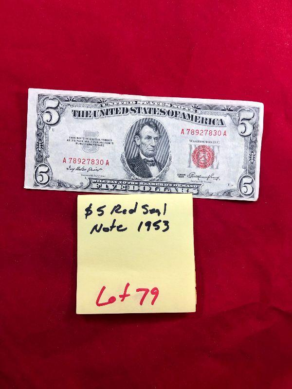 Lot #79 $5 Red Seal 1953 Five Dollar Bill US Currency