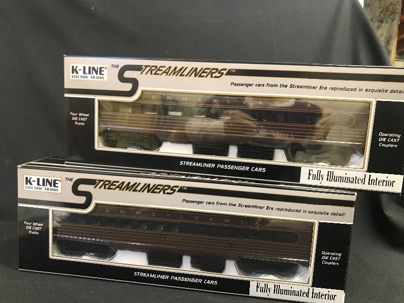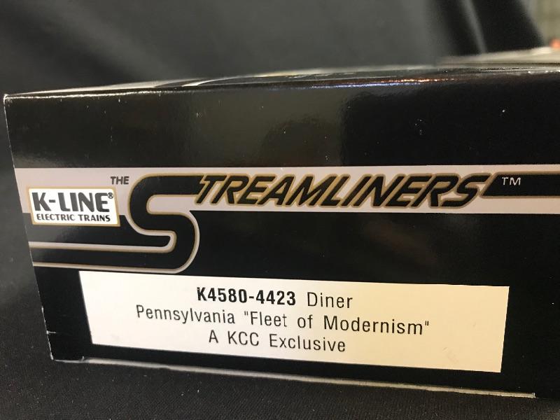 K-Line Streamliners K-Line K4580-4423 Diner Pennsylvania "Fleet of Modernism" and K-Line K4580-0006D PRR Imperial Pass Combine Streamliner w/ Interior. Please see all pictures for content of the lot, condition of the lot, and measurements if taken. Pictures are the best representation of the items listed and items are untested unless indicated in description. Thank you for looking and have fun bidding!