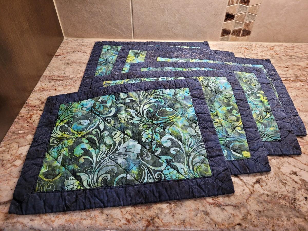 Lot 79: Quilted Placemats (6 - Blues & Greens)