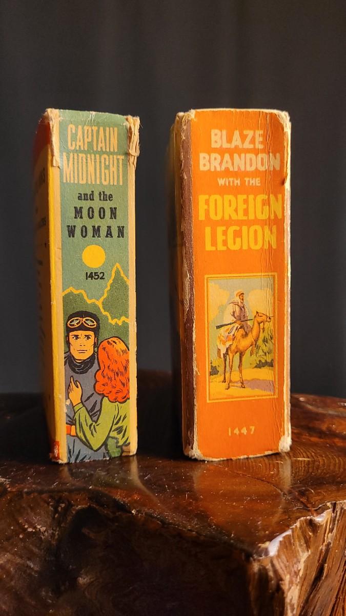 This lot features (2) Vintage Wartime stories. CAPTAIN MIDNKGHT and the MOON WOMAN is from 1943 and in nice condition for age. BLAZE BRANDON with the FOREIGN LEGION is from 1938 and shows a name on the back inside cover.