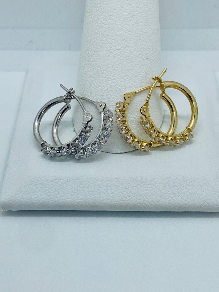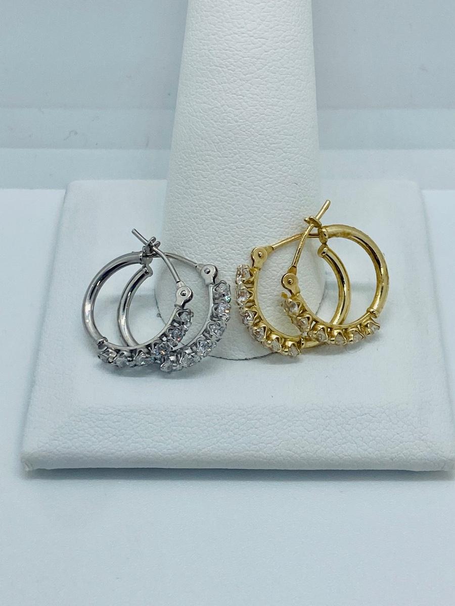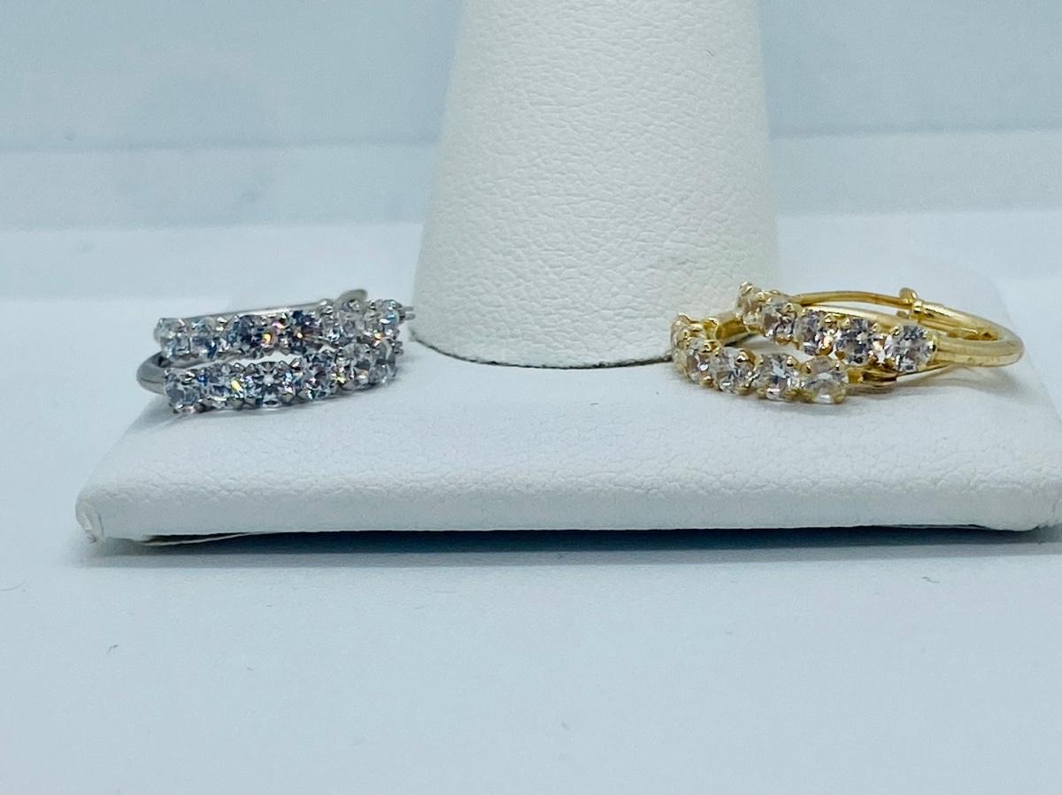 Two pair both yellow and white 14kJCM gold CZ accents total weight 2grams