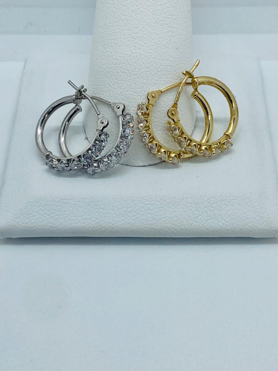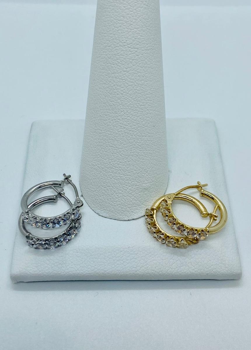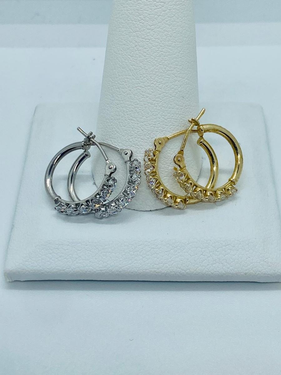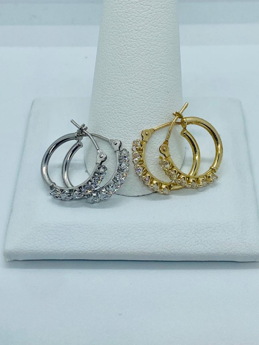 Two pair both yellow and white 14kJCM gold CZ accents total weight 2grams