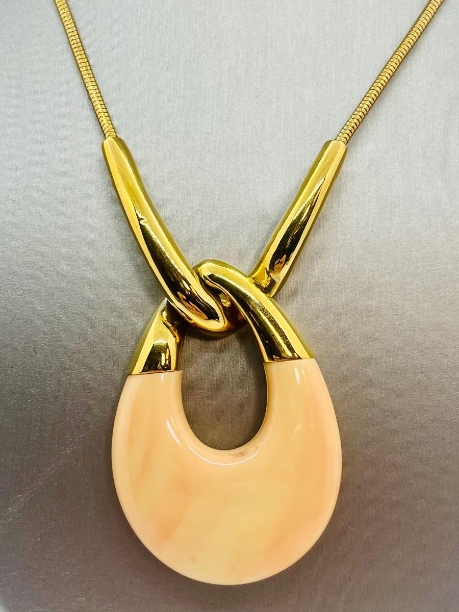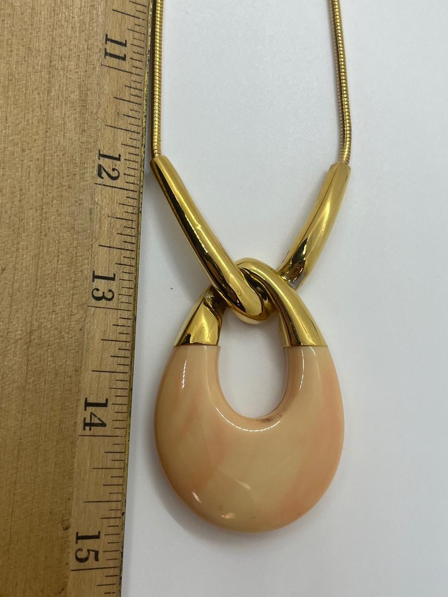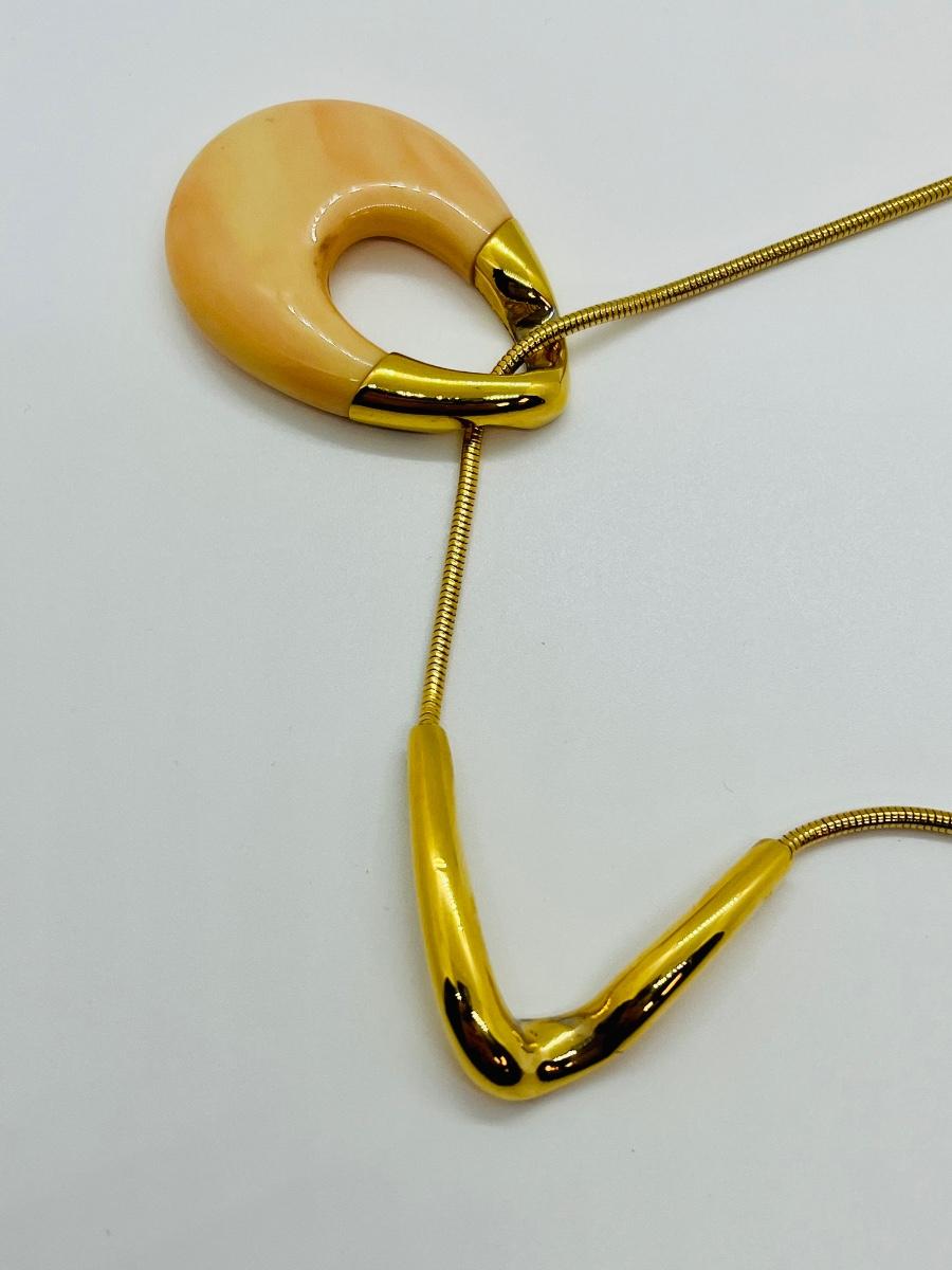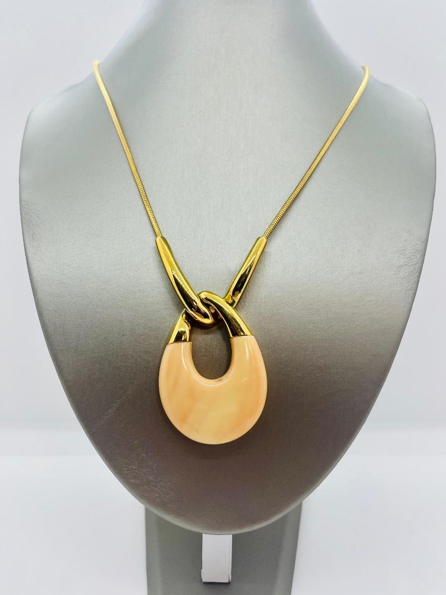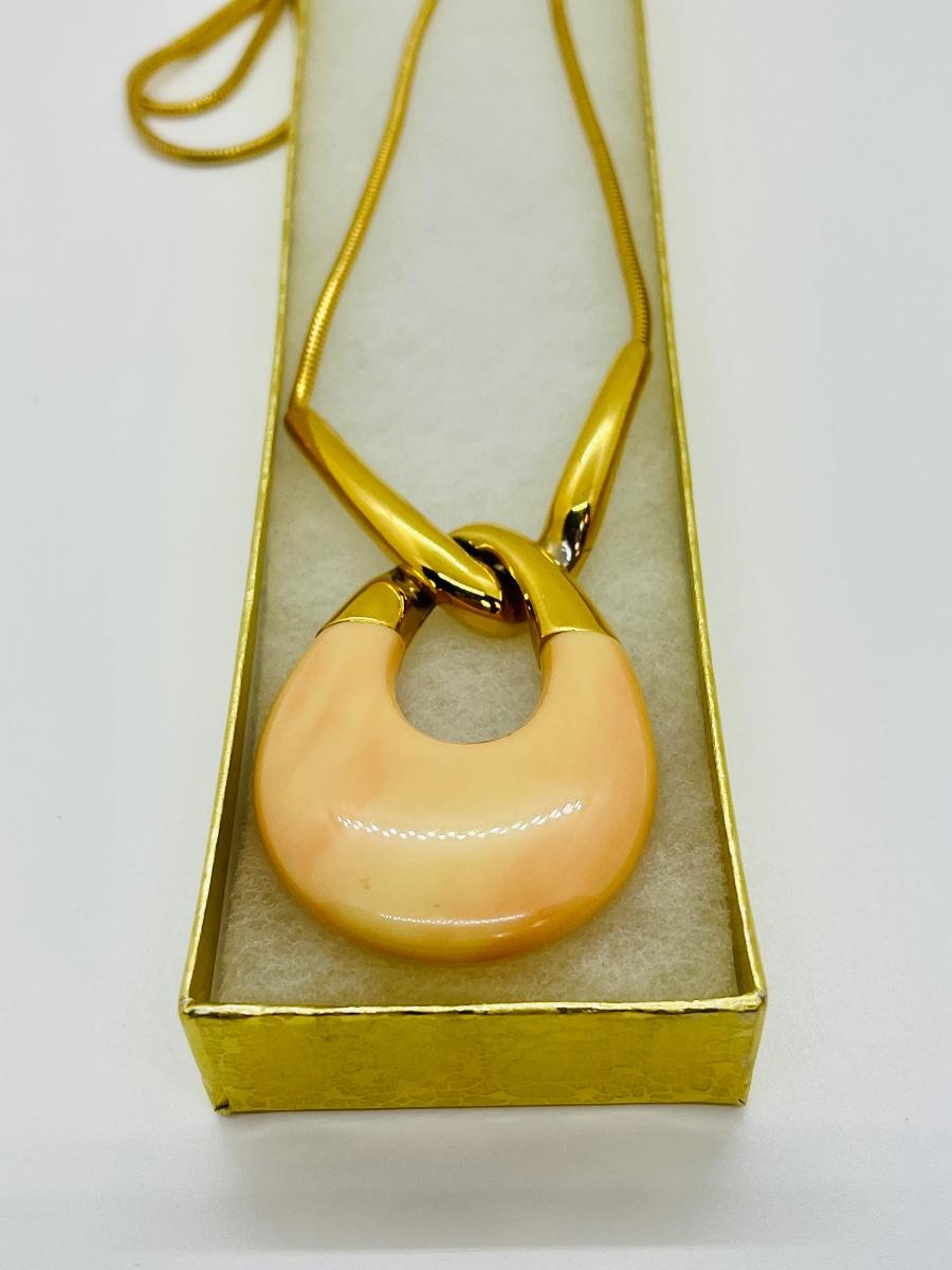 Vintage 1960s abstract modern peach lucite medallion necklace