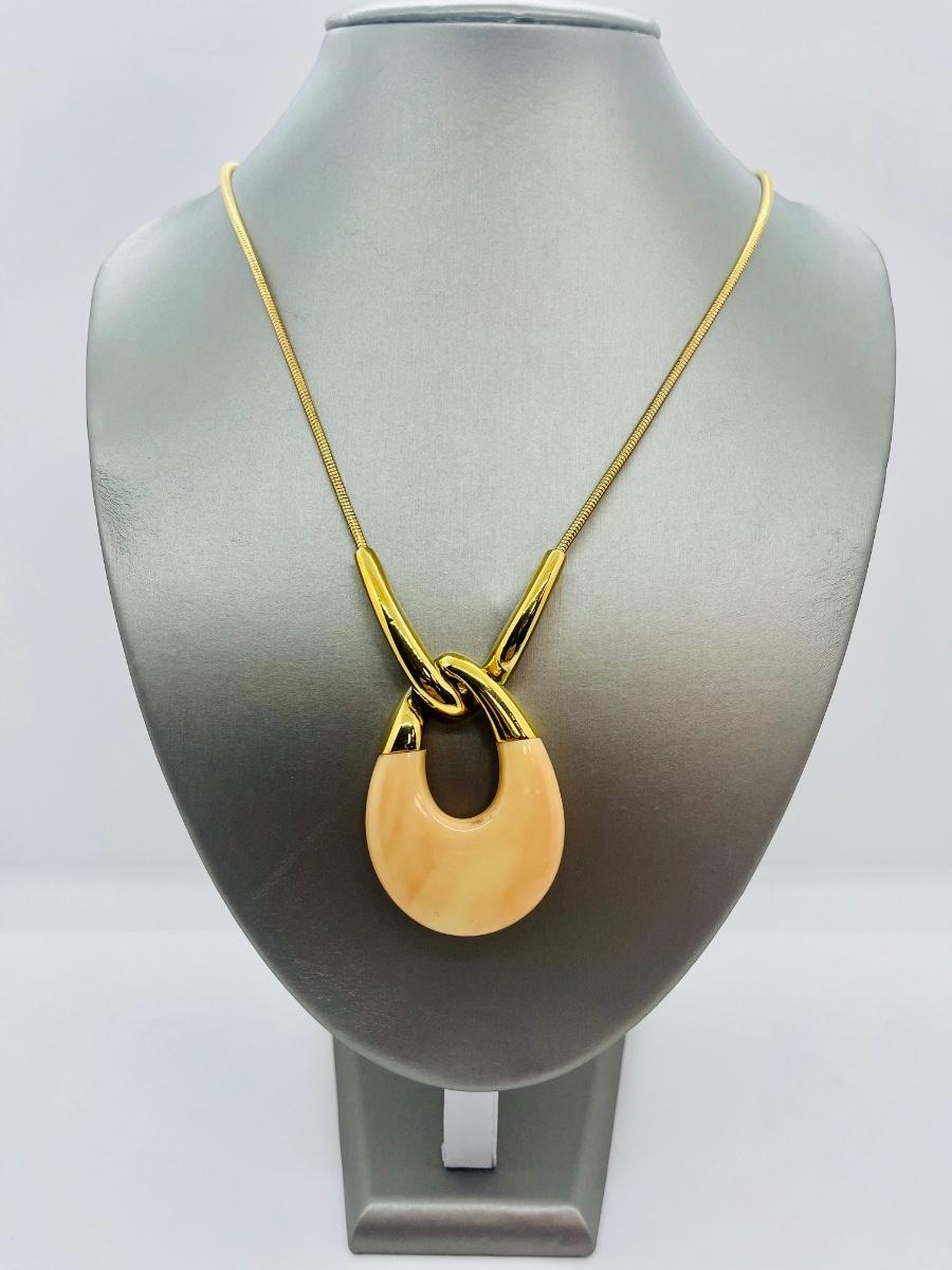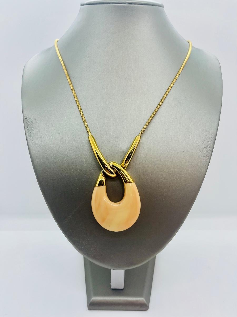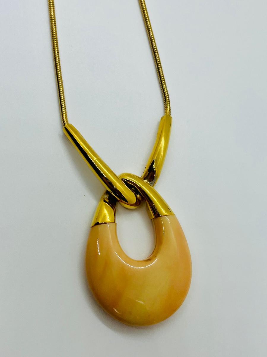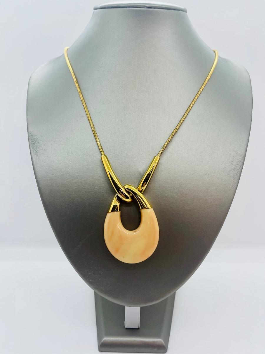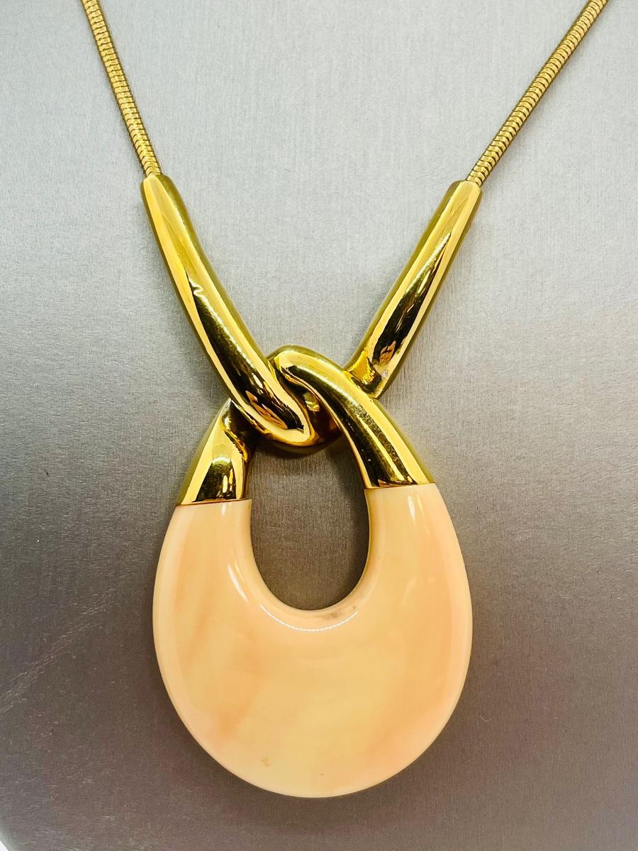 Vintage 1960s abstract modern peach lucite medallion necklace