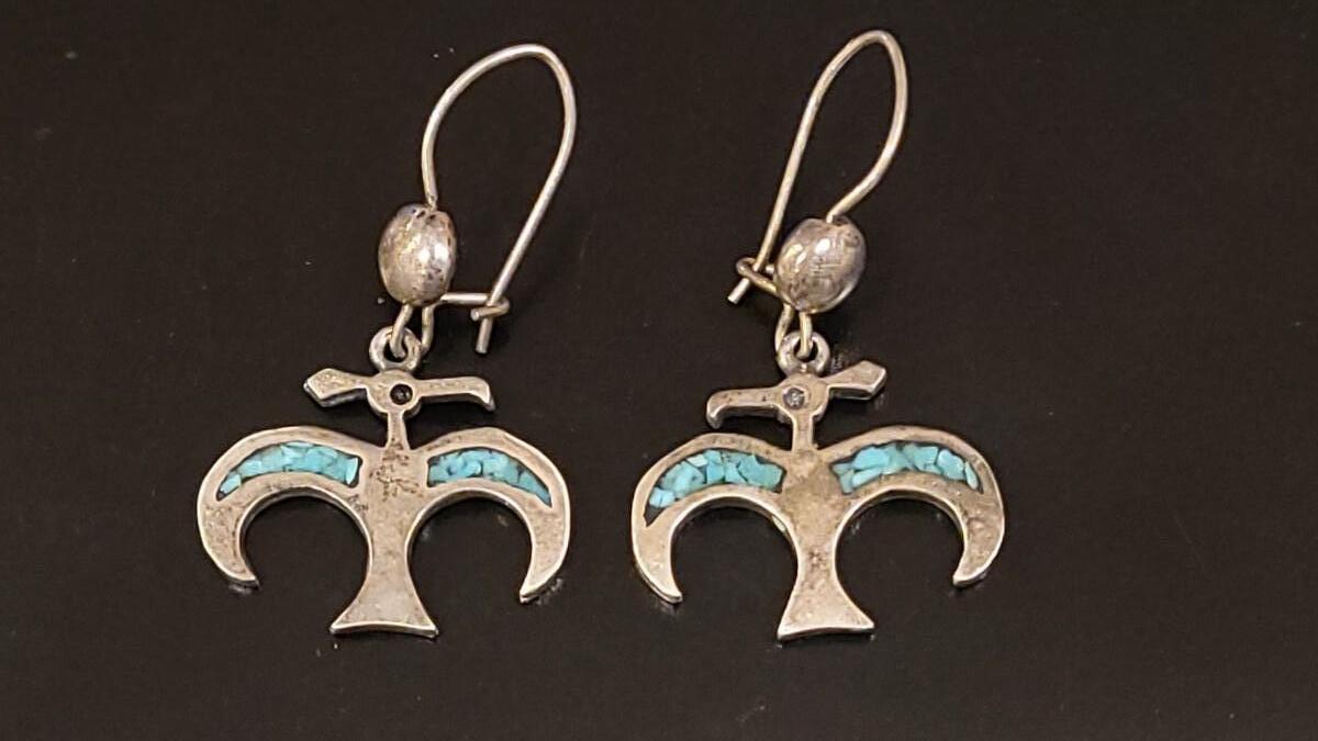 Lot 79: Vintage Sterling & Turquoise Thunderbird Earrings