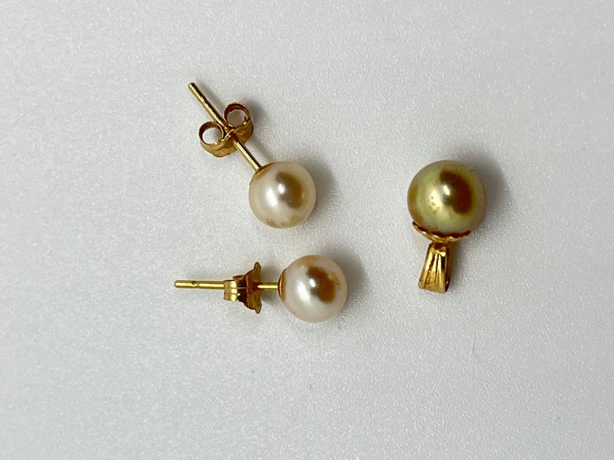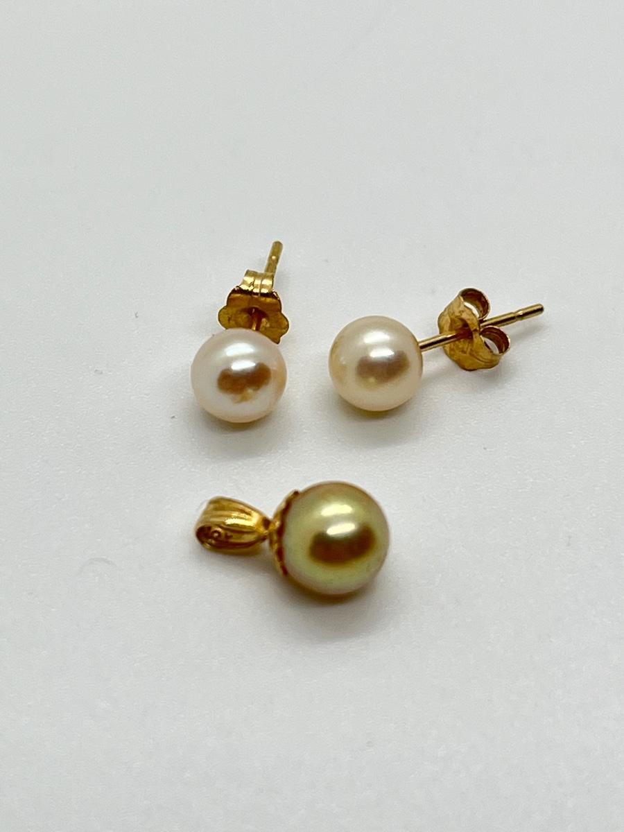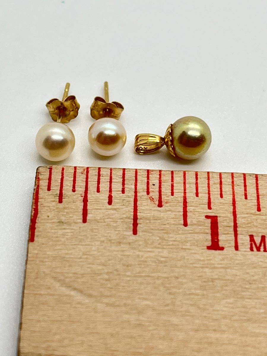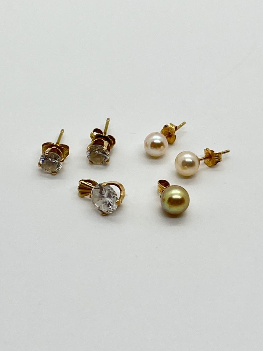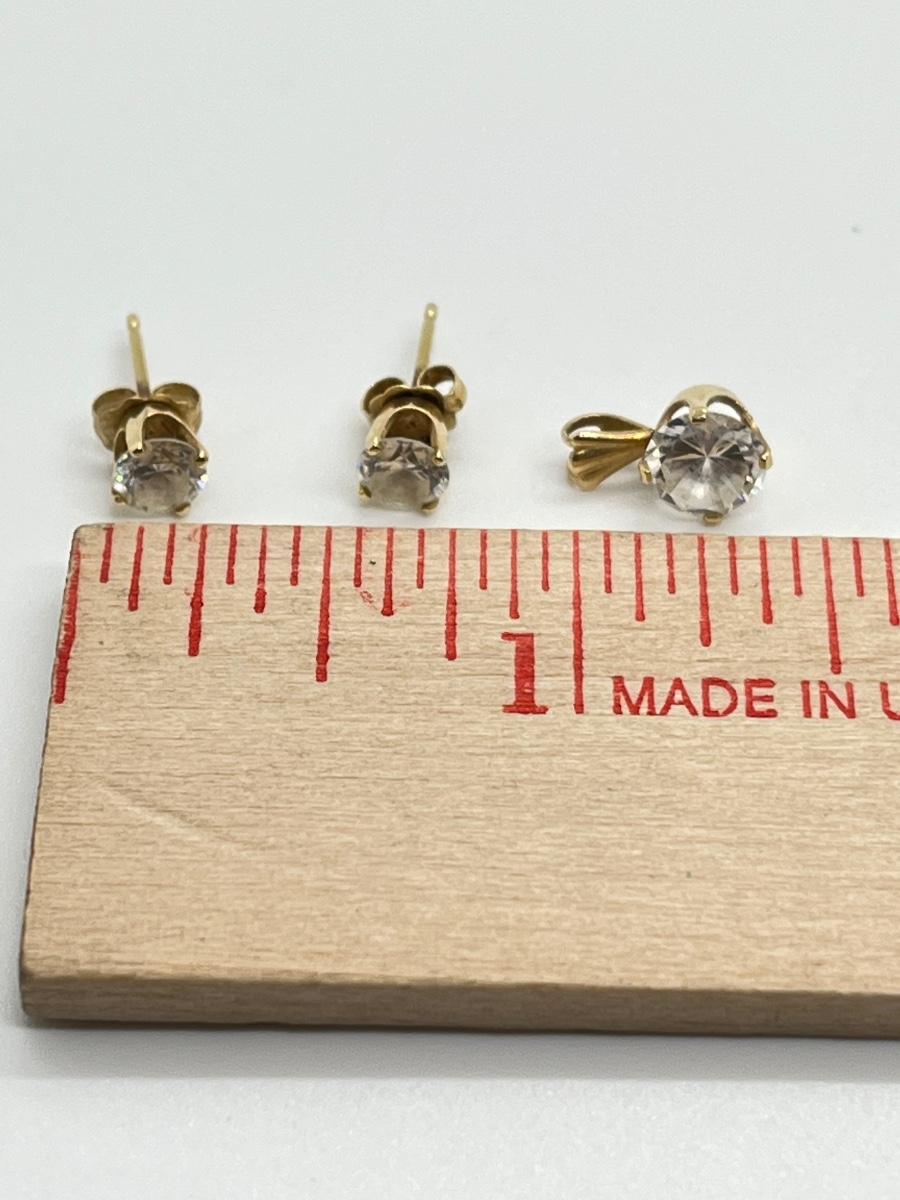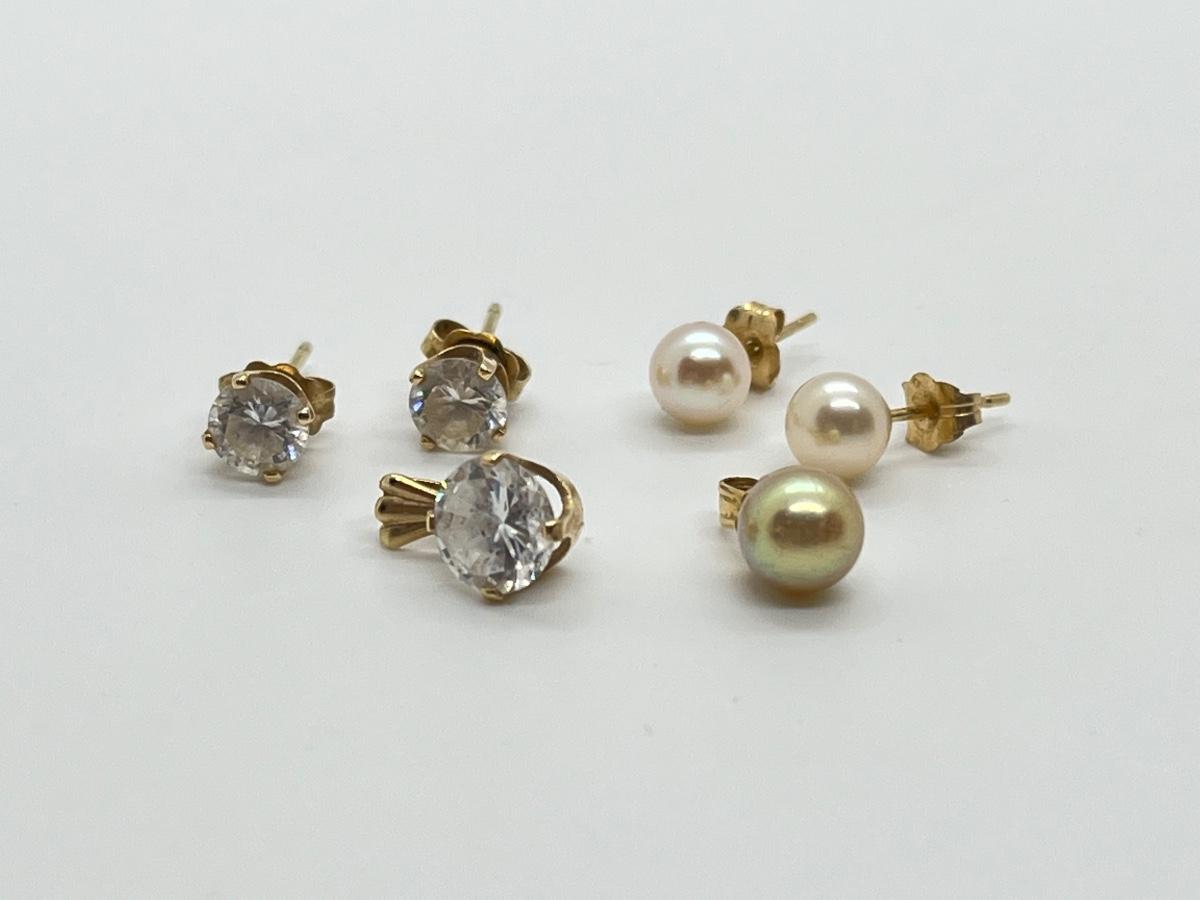 LOT 79: Two 14k Gold Earring and Pendant Sets - 1 Cultured Pearl, 1 CZ - 2.72 grams total weight