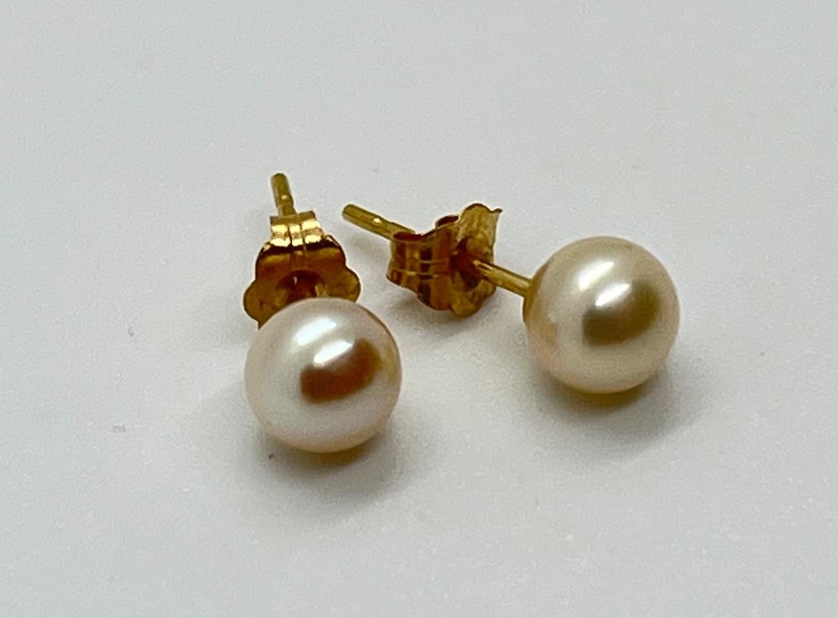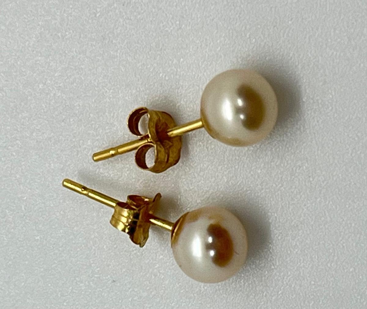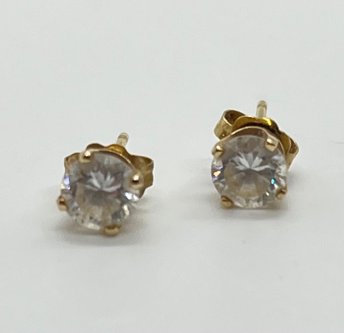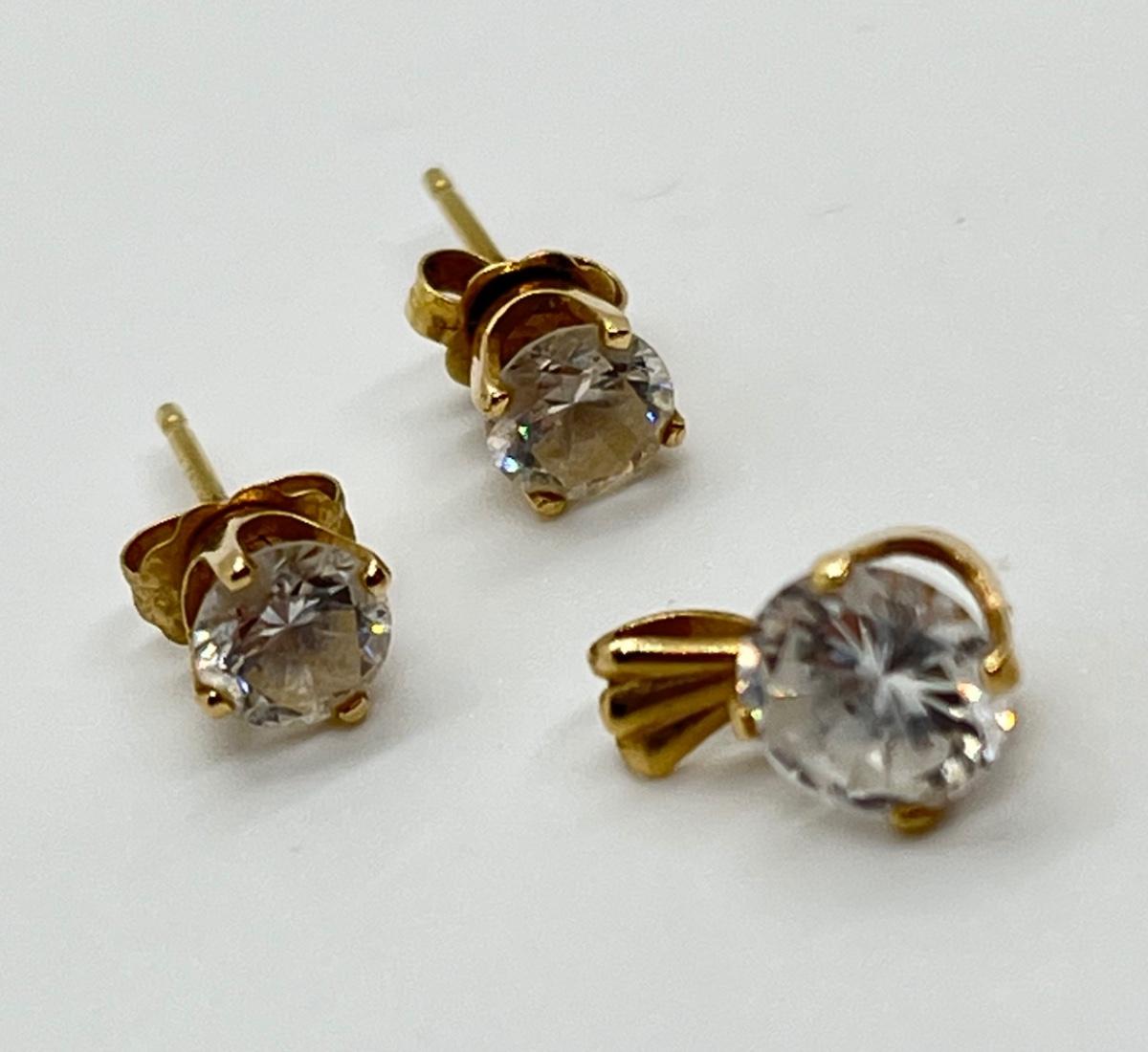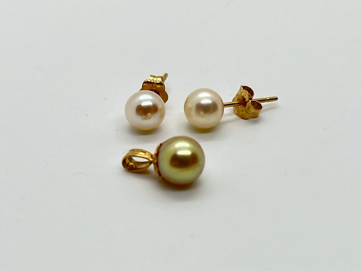 LOT 79: Two 14k Gold Earring and Pendant Sets - 1 Cultured Pearl, 1 CZ - 2.72 grams total weight