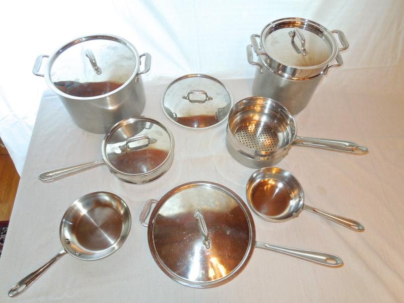 Lot 79: All Clad Stainless Cookware with Stock Pot, etc.
