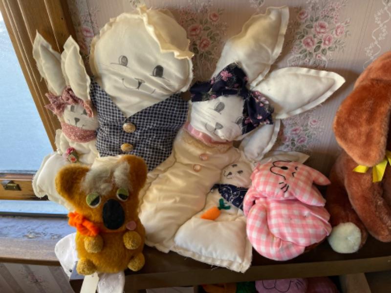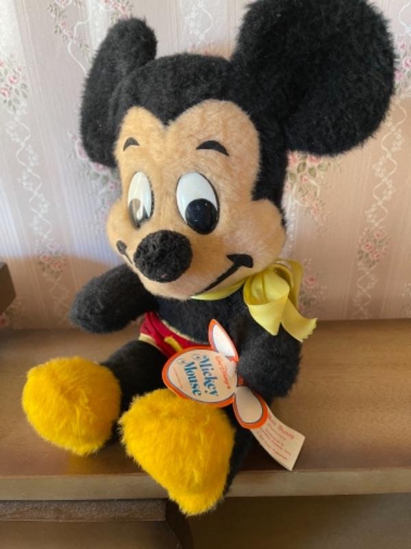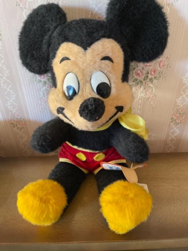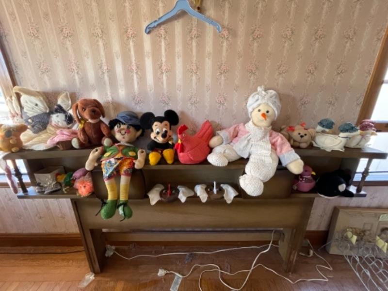 Lot 79. Assortment of stuffed animals and dolls (vintage Mickey Mouse doll, etc.--$12