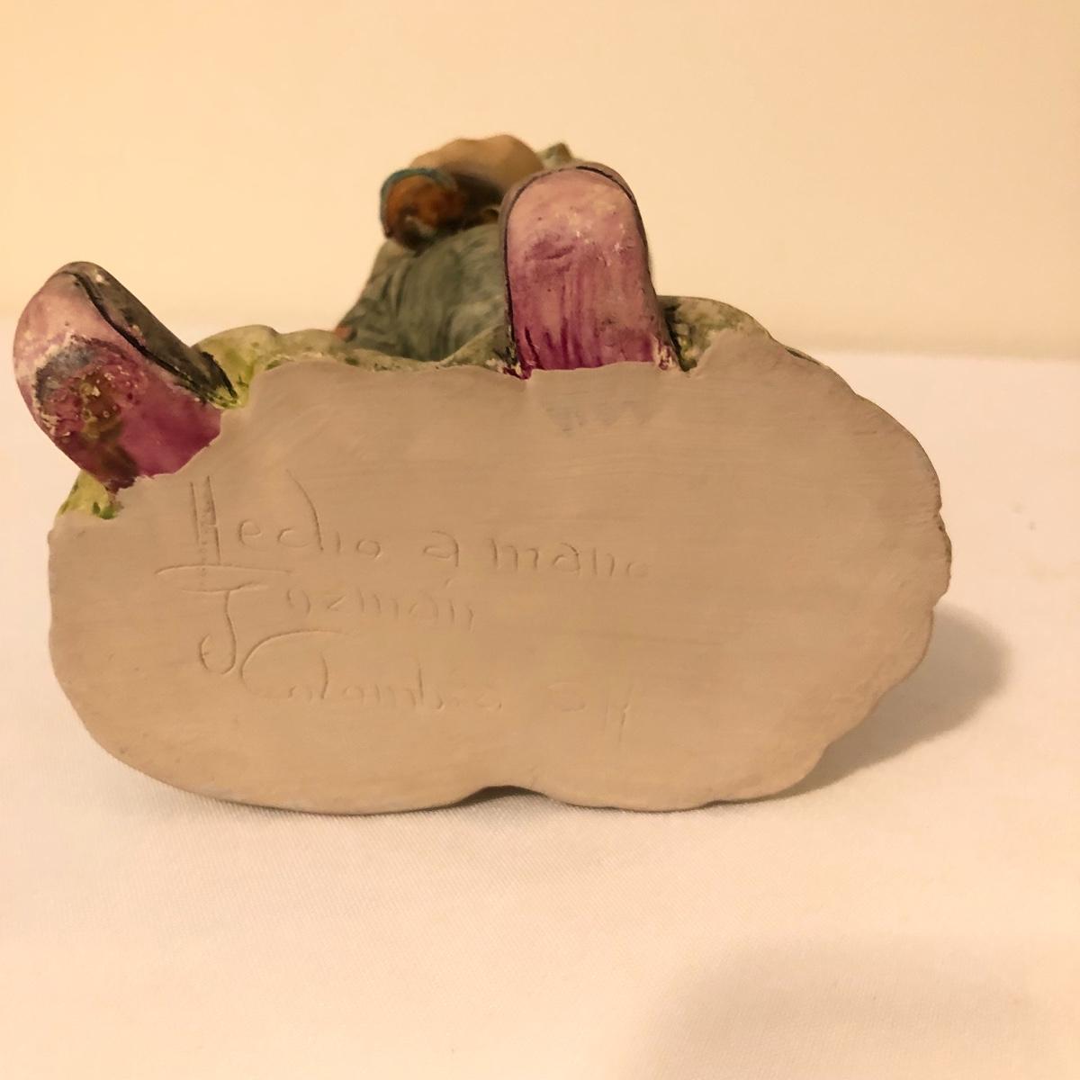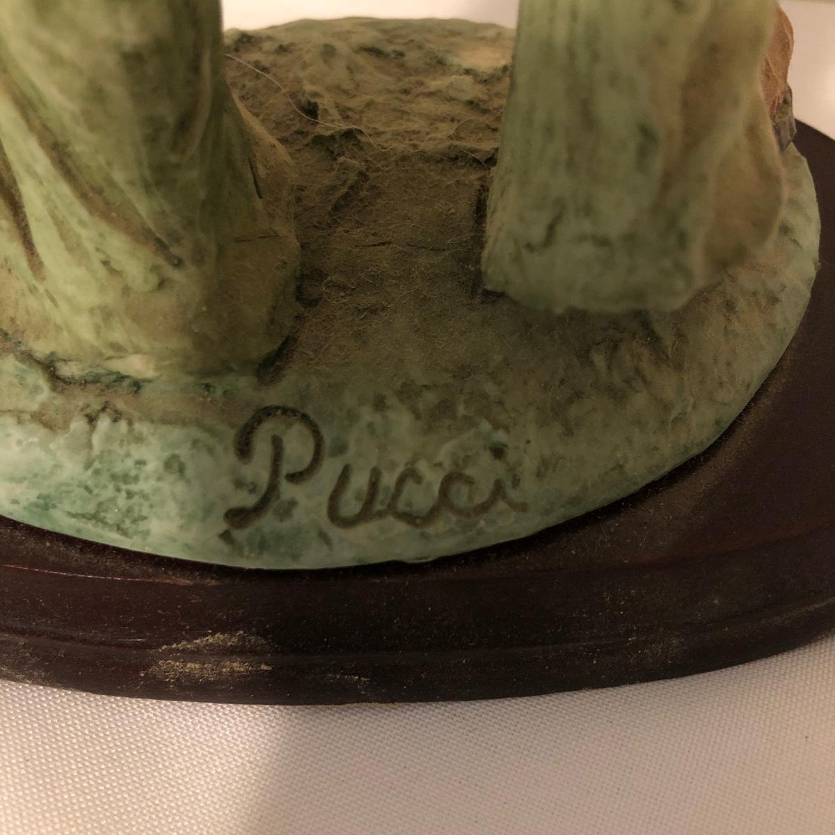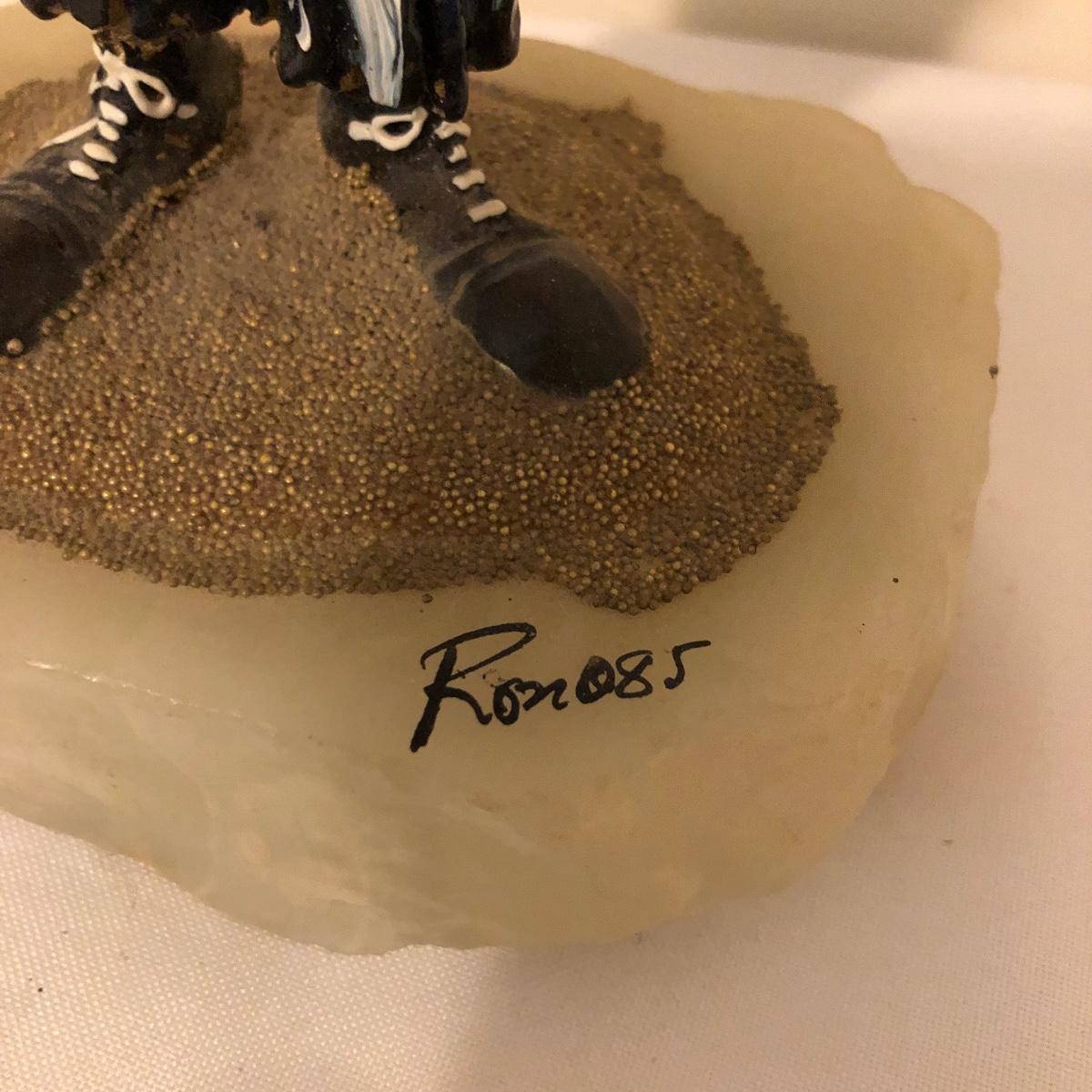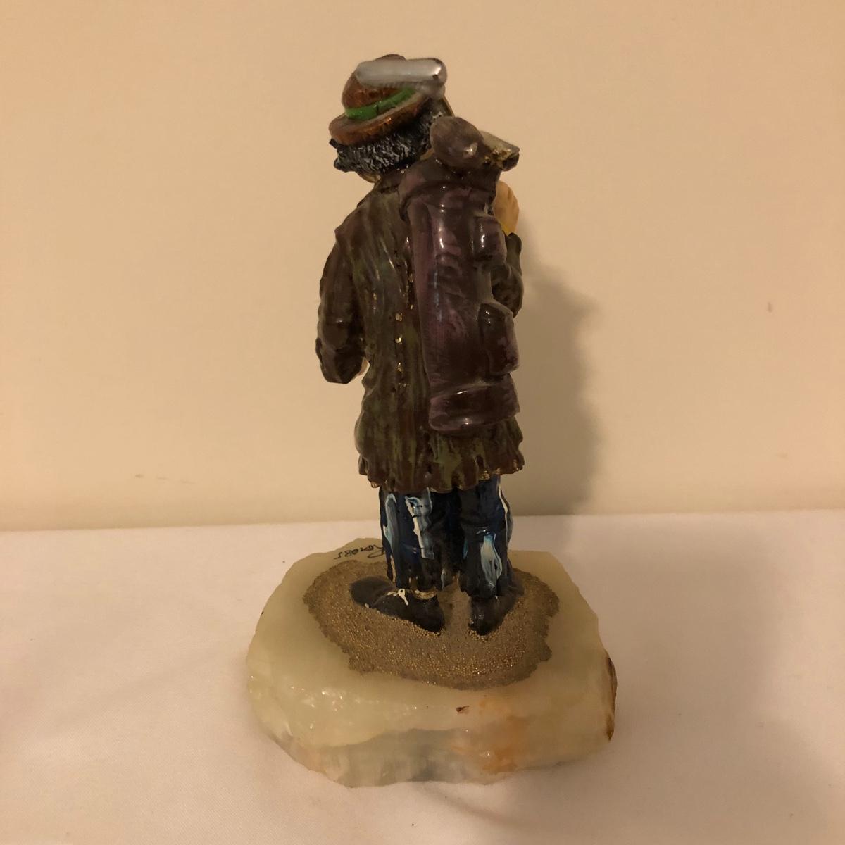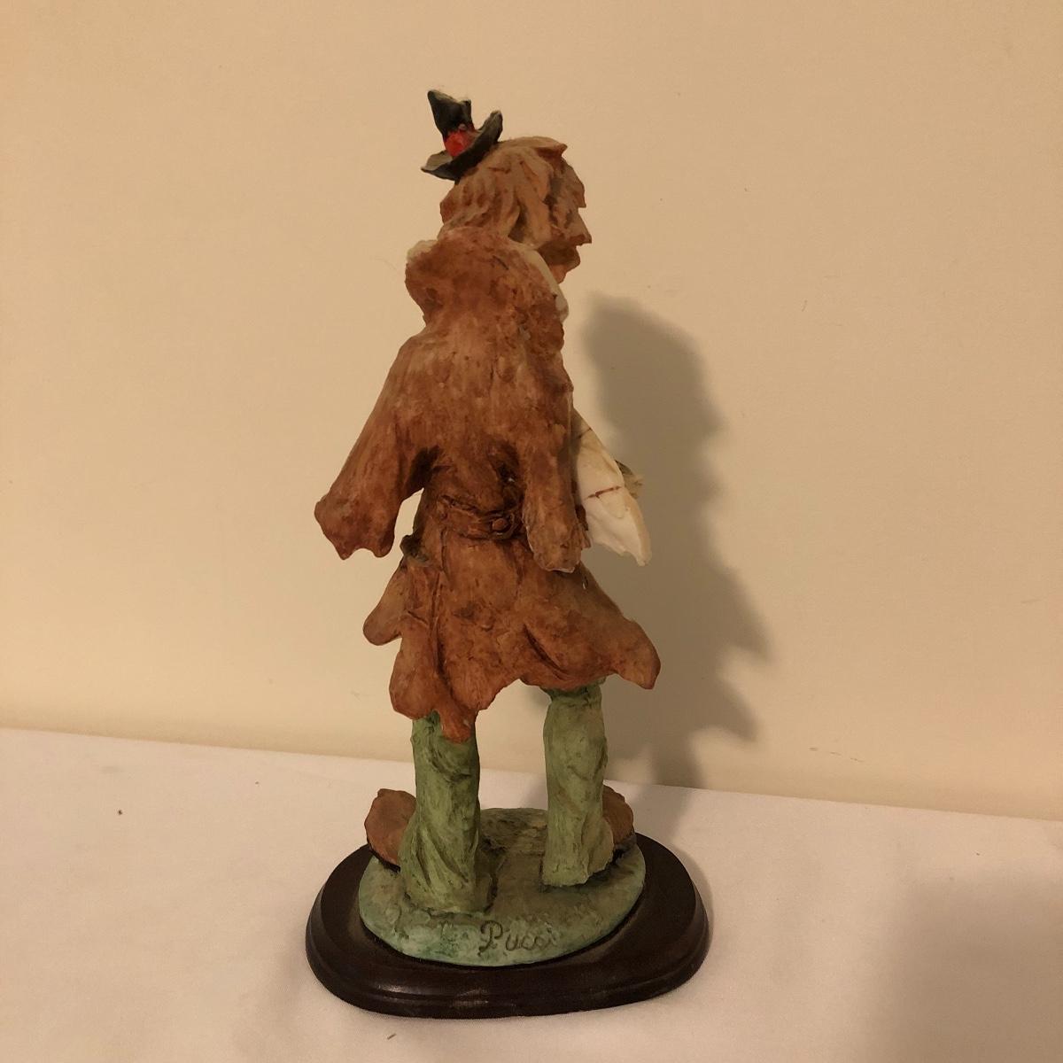 Trio of clown figurines will put a smile on your face. Lot includes Chip off the block signed by Ron with a stone base that appears to be metal covered by epoxy and is very heavy, resin clown by Pucci and a hand made ceramic signed by Guzman. Tallest figurine measures 4” x 6” x 12”.