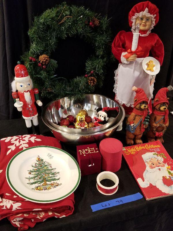 2 Stainless Steel 13 qt Punch Bowls, Spode Christmas Tree Plate, Nutcracker, Animated Mrs Claus and more!