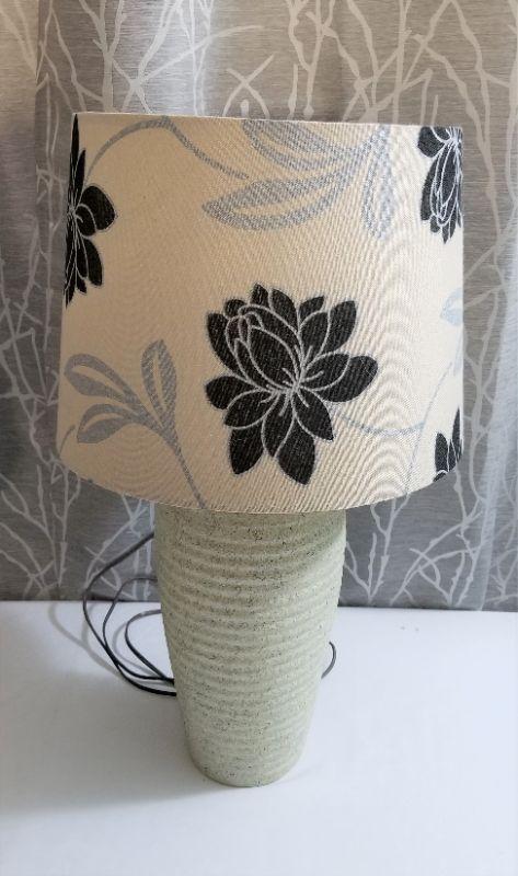These lamps work great and have a good look - pottery base, flowered shade - nice neutral colors. They stand 23" tall. Note: one does not have any felt on the bottom.