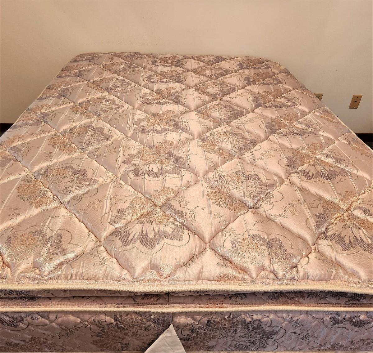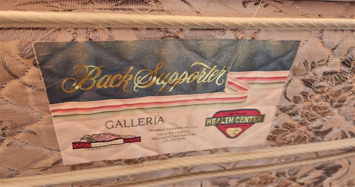Clean and comfy - no child household - Health Center Back Support mattress - has a bit of age to it, but this was in the guest room and doesn't appear to have gotten much use. 57" across, 77" long - very clean. Sure beats sleeping on the floor.