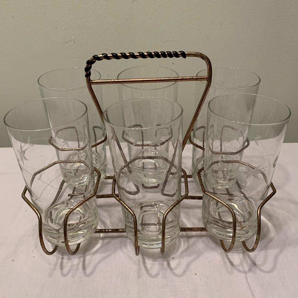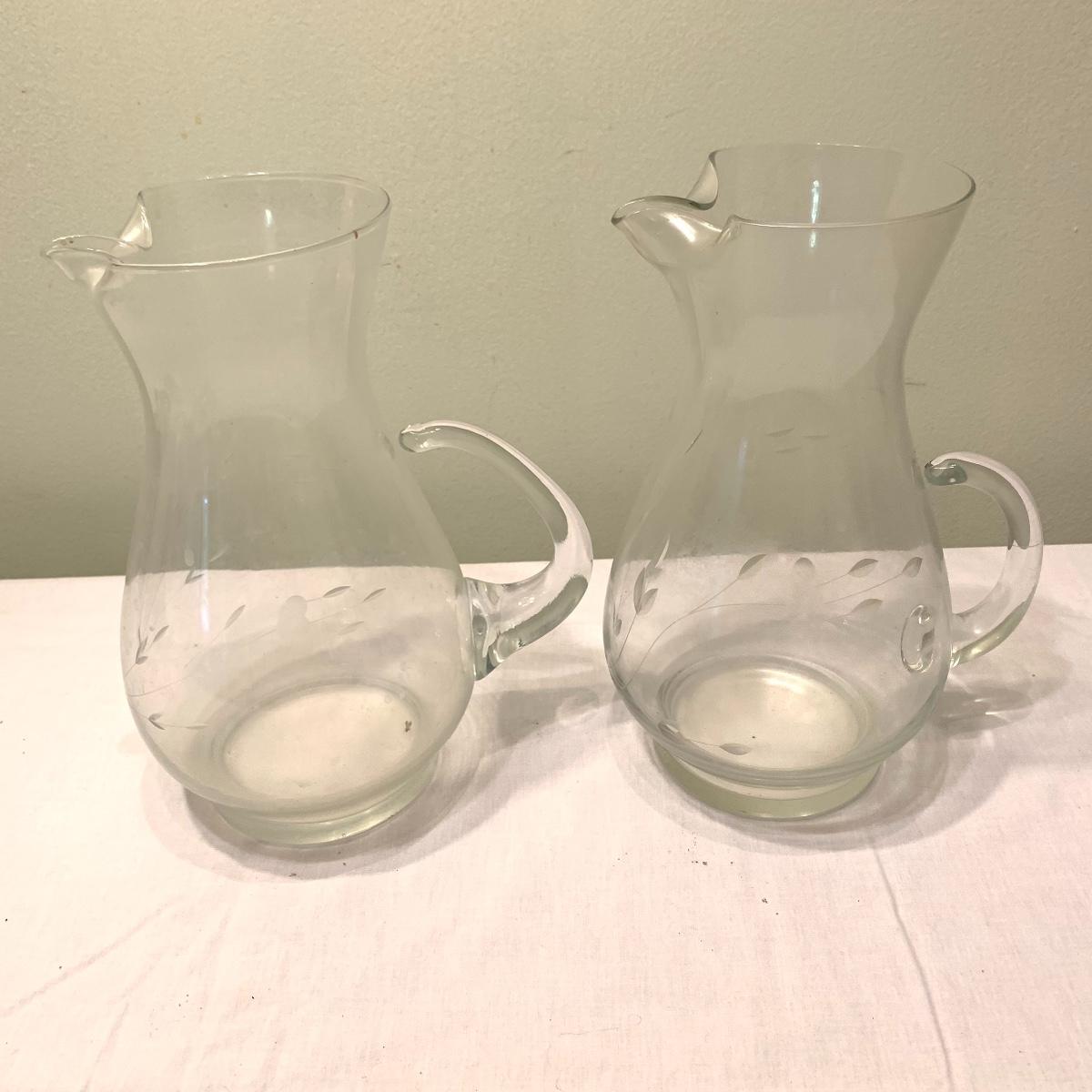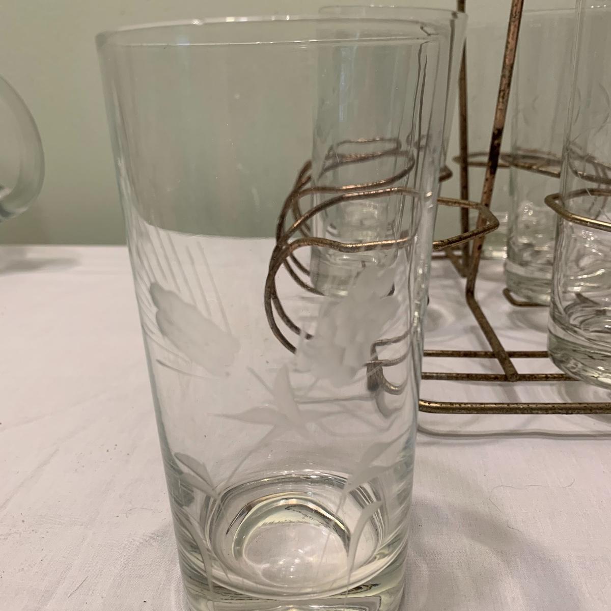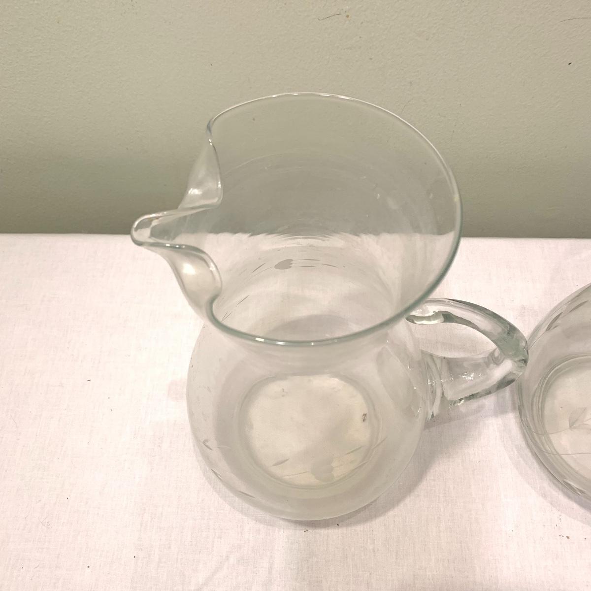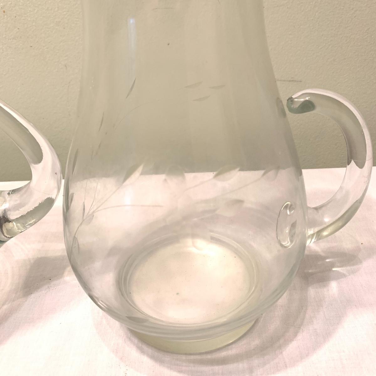 Invite your friends and family over and show off this beautiful glassware. Lot 79 includes a set of ten glasses with a handsome natural motif etched into each glass. This set comes with a six glass carrying caddy. There is also a matching pair of 10” pitchers that also feature an etched nature themed pattern. Also included is another 10” pitcher that boasts a gorgeous etched grape motif. Next are two wine glasses with the same grape motif as the pitcher. Last is a little cream pitcher and a lidded sugar bowl. Local pickup only.