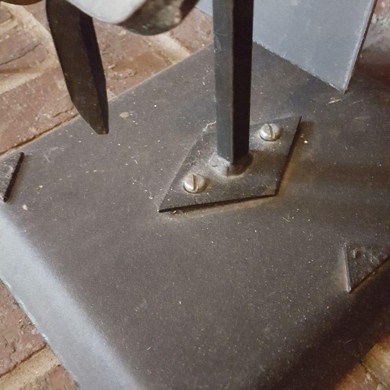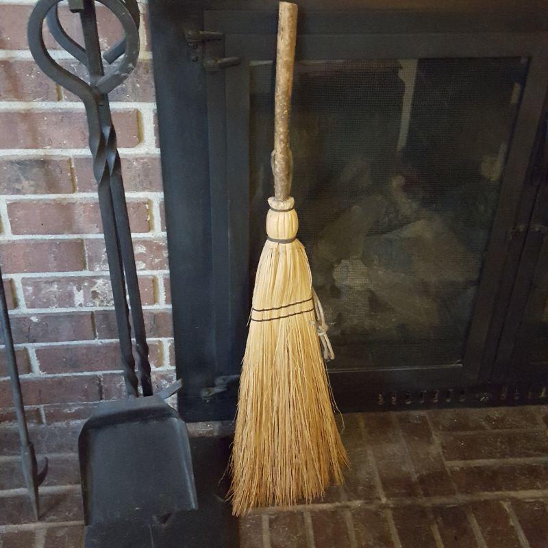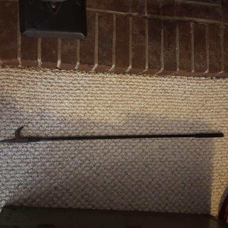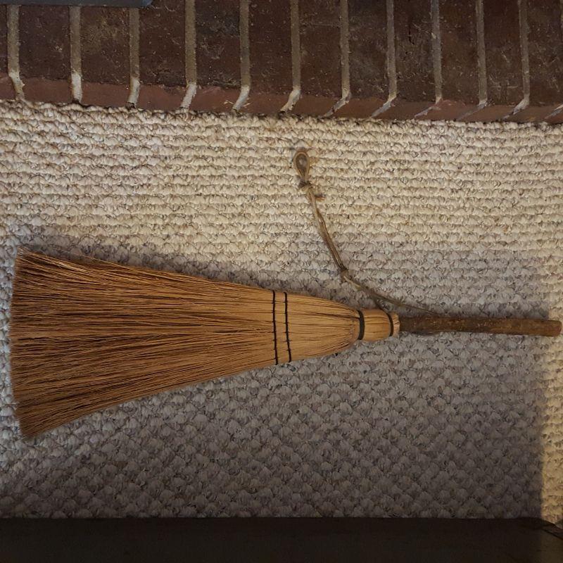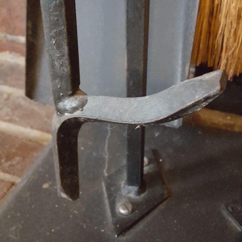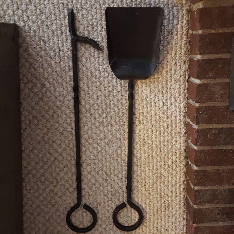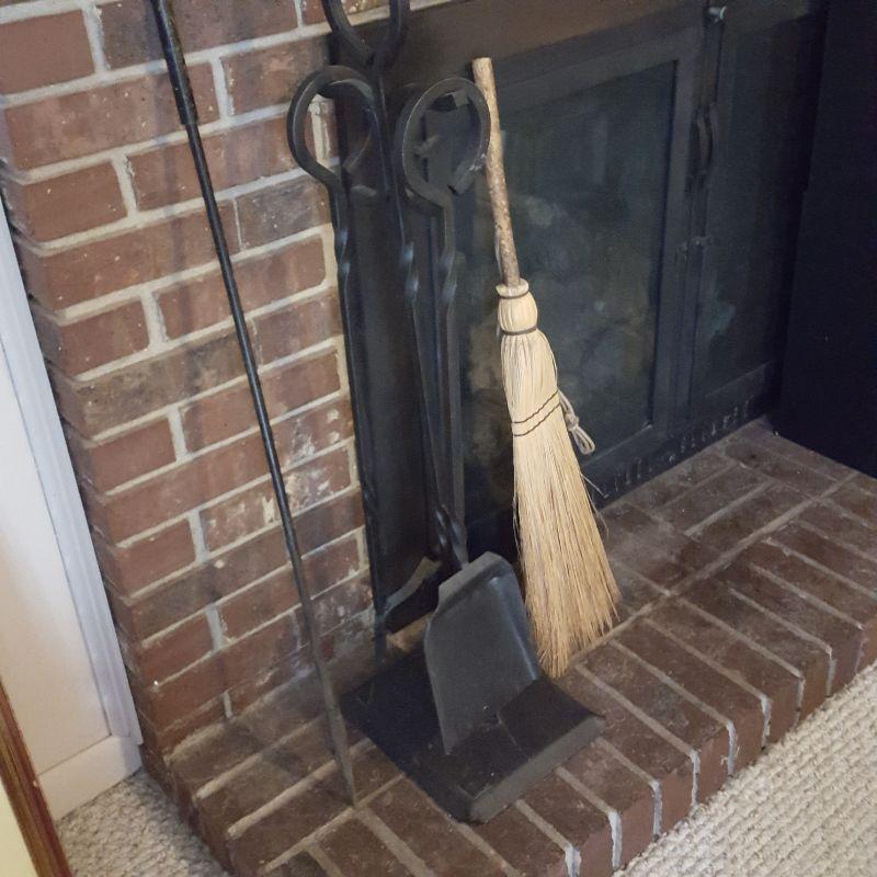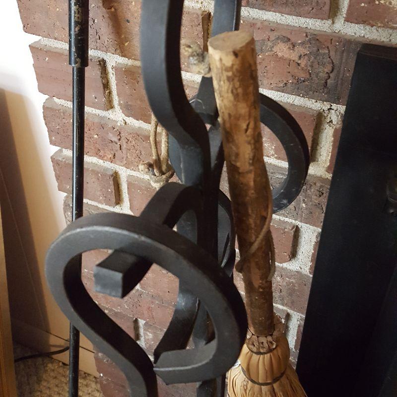 This fireplace set includes a stand with a shovel and a poker made of cast iron. As an extra bonus there is an extra metal poker and an unique handmade broom. The stand itself stands 9x 36 inches. The stand, shovel and poker appear to be in great condition. The extra poker is worn on the bottom, but does not interrupt it's use. The broom has also been used, but appears to be in good condition. Local pick up only.