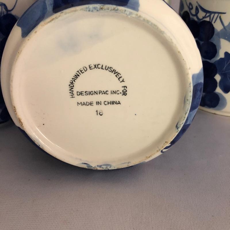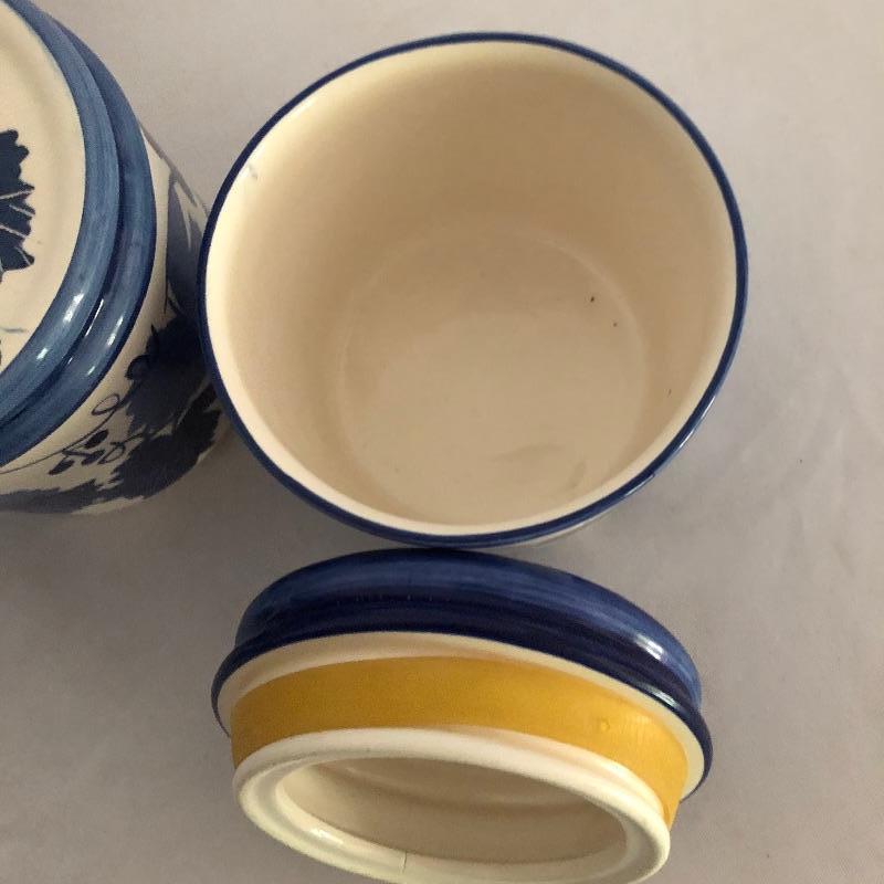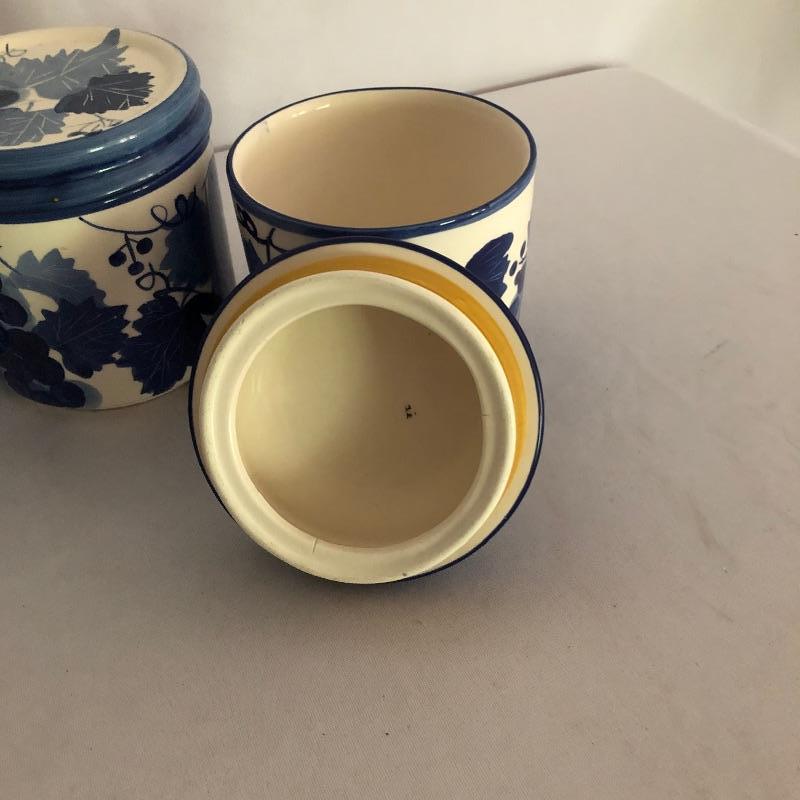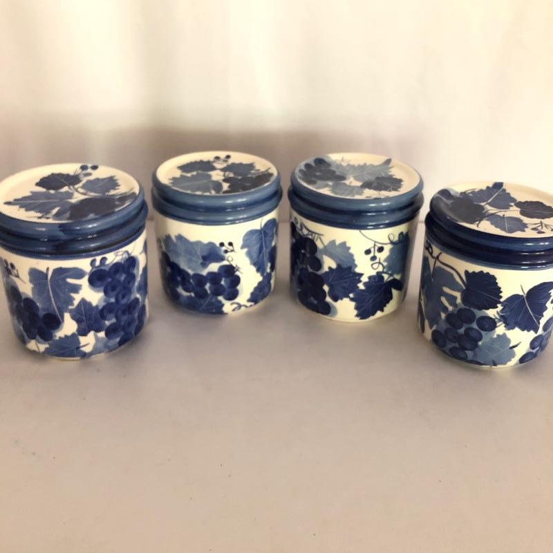 Store your vitals in style with these four botanical inspired canisters in various shades of blue.