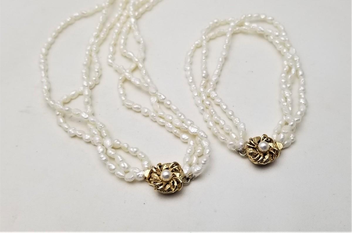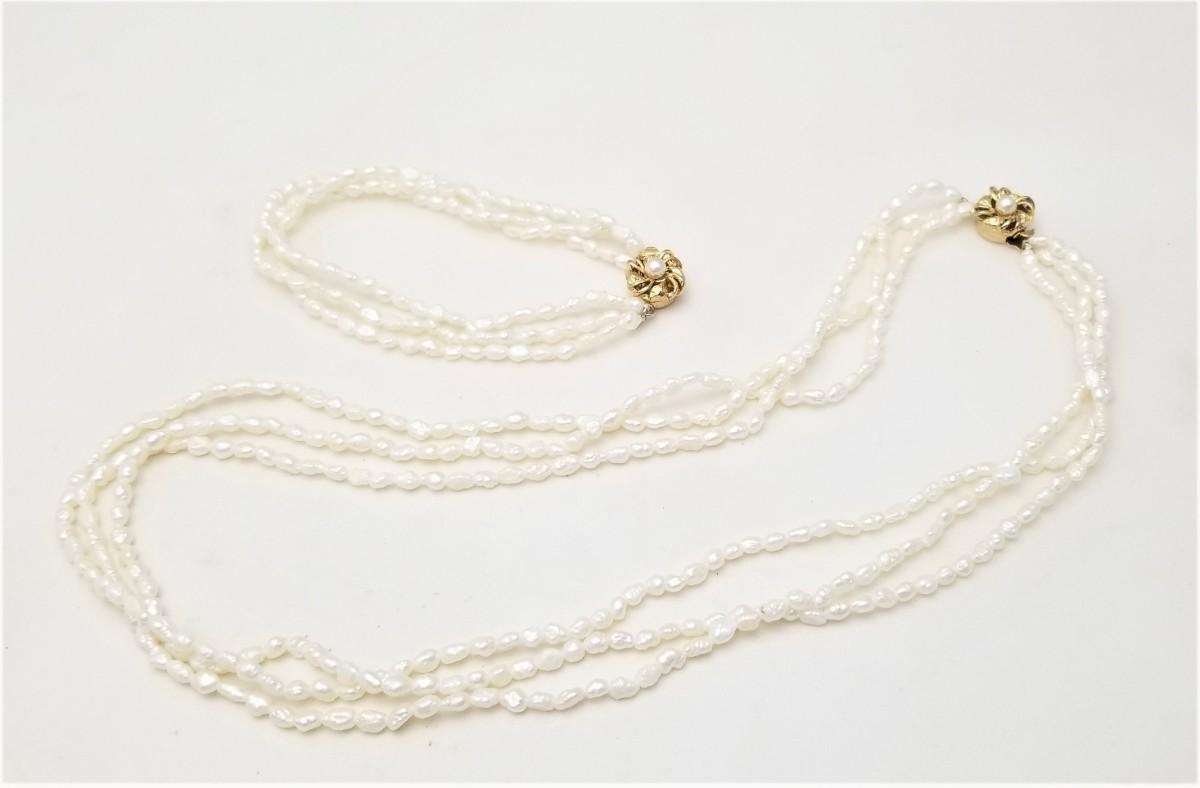 Lot #79 Freshwater Pearl Triple Strand Necklace with Matching Bracelet