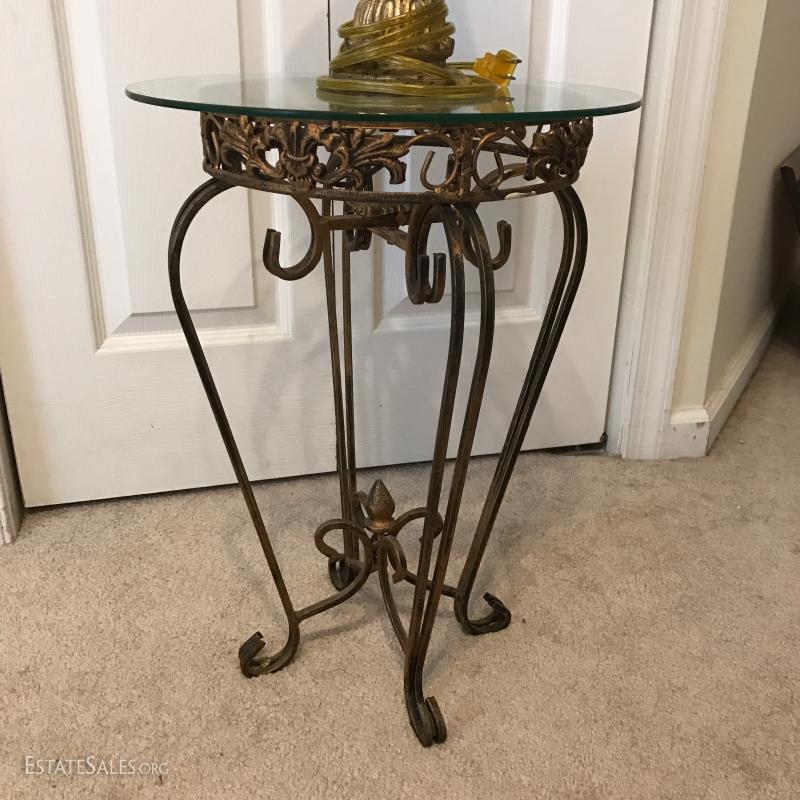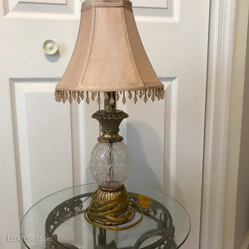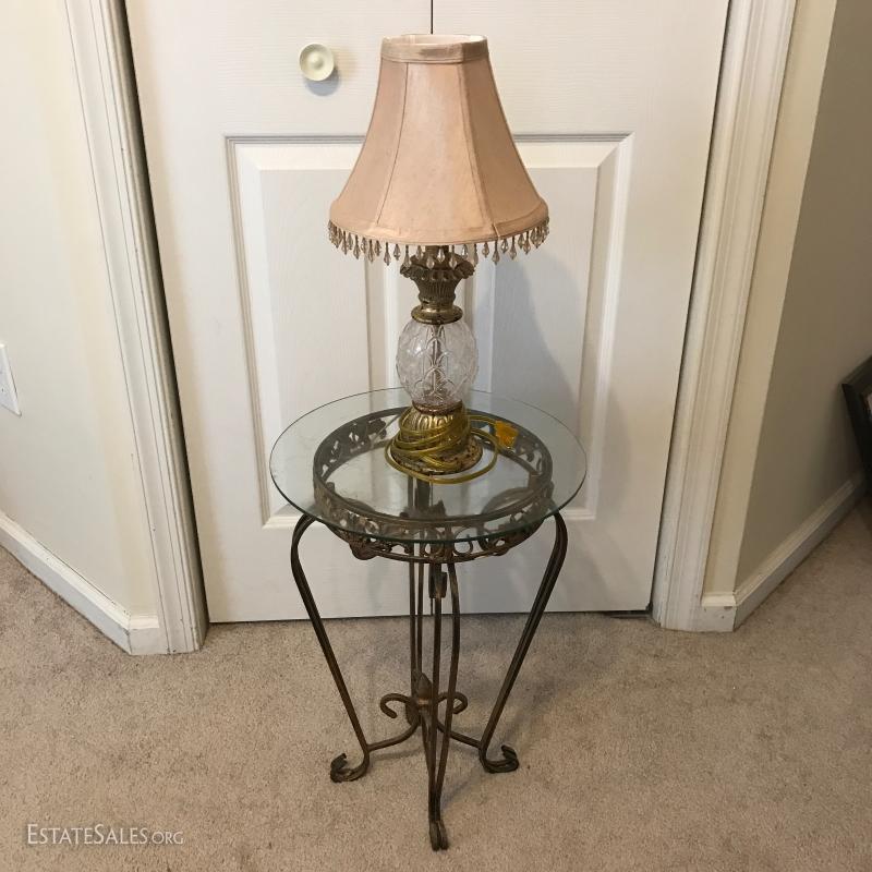 Metal table with glass top and glass lamp. Top for table is not secure on stand (may need pads) but works. Lamp is 17.5" tall and table is 20" tall. This lot is available for local pick up in Mills River, NC only.