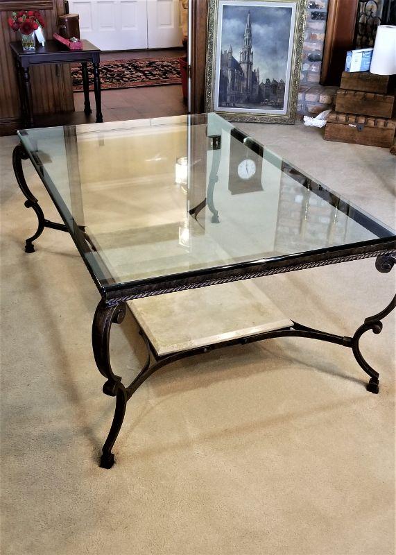 Lot #79 Gorgeous heavy glass/metal coffee table