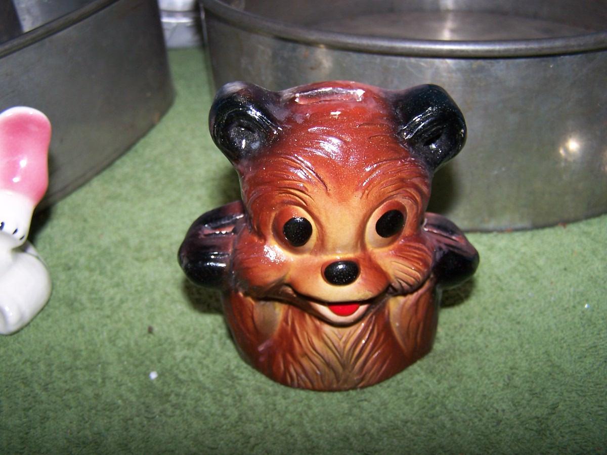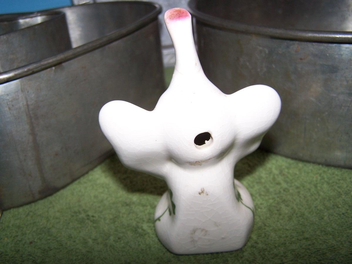 THIS IS GREAT OLD KITCHEN STUFF!!! THE CERAMIC ELEPHANT IS A PIE BIRD, THE PANS COME APART.. LIGHT WEAR..