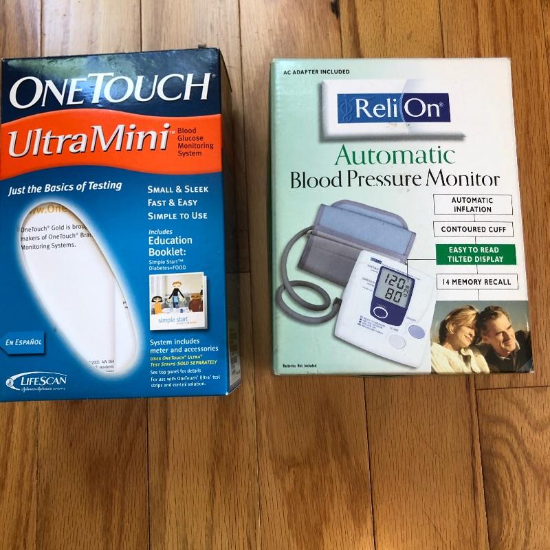 All electrical run items powered on when plugged in. The OneTouch glucose tester appears to be new.