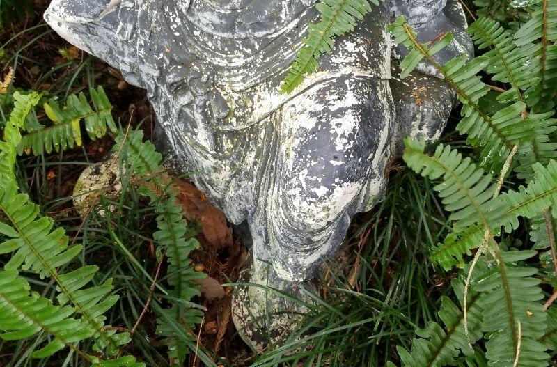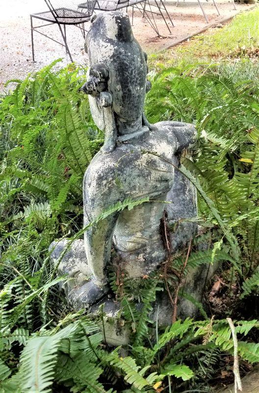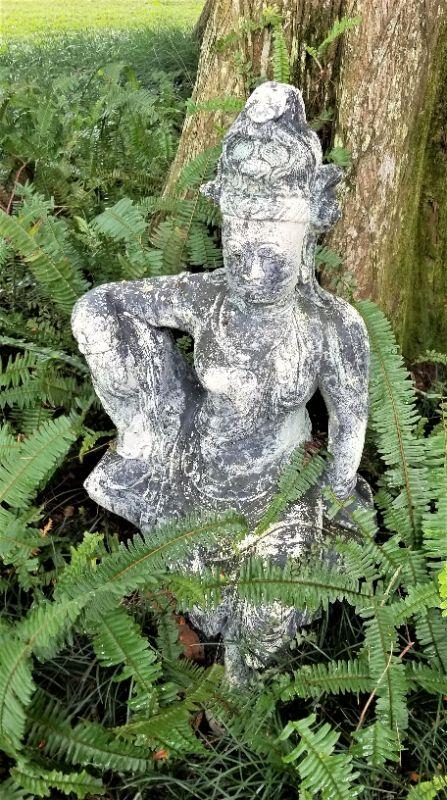 This concrete Buddha has a great look - seated position - very heavy. Will take two strong guys to move this. 32" tall.