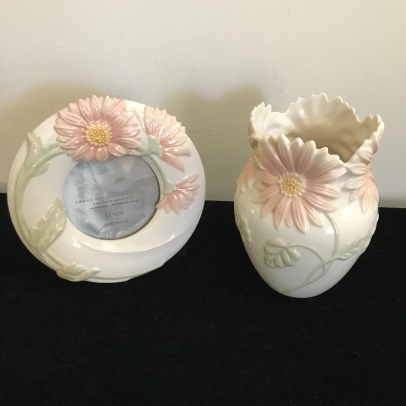 Lot includes two like-new pieces of Lenox Ware. One is a vase and one is a photo frame. Vase is approx. 6” tall. Shipping available or local pickup in Hendersonville, NC.