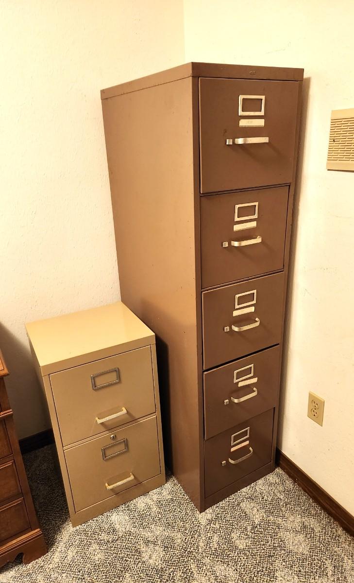 Lot of 2 standard metal file cabinets - 1 4-drawer, 1 2-drawer. Good used condition. Perfect for the home office.
