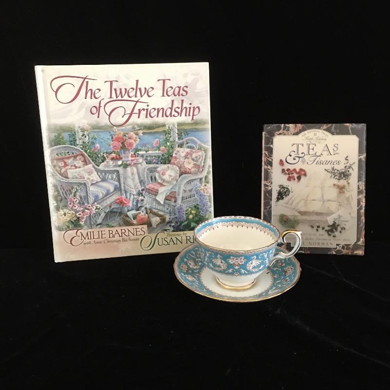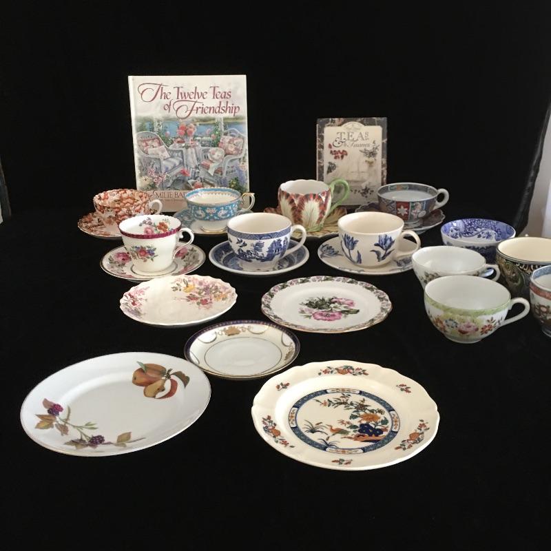 Melange of teacups has a variety of cups, saucers, some matching and some singles, see pictures. Also has two books. It’s always nice to drink tea out of a proper cup and you will have plenty to choose from in this lot.