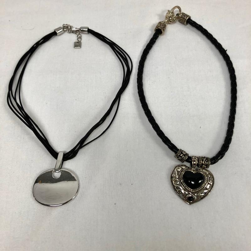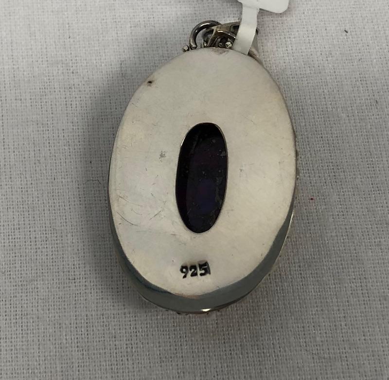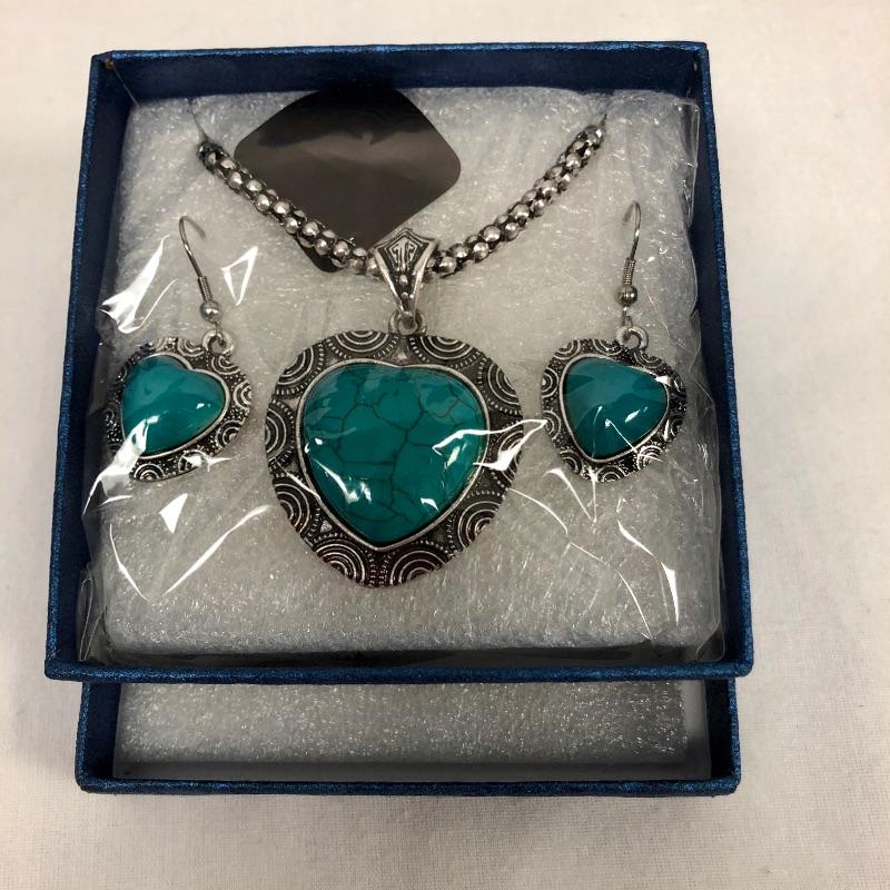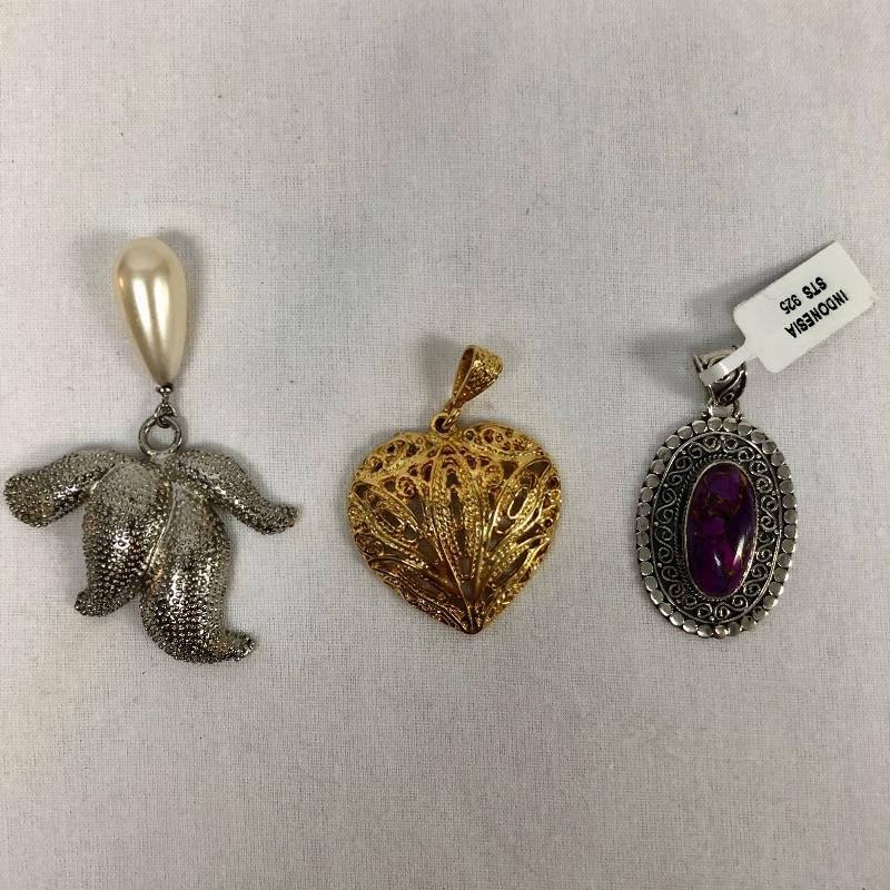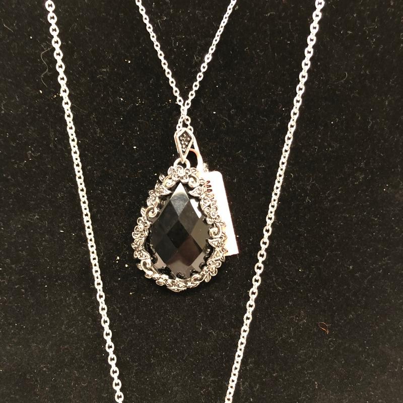 A lovely assortment of pieces that includes a matching necklace and bracelet with blue stone centerpieces. The necklace chain is marked stainless steel and measures 18”. The black stone pendant necklace also measures 18” and the pendant is marked stainless steel. Also included are 8 new in the bag pendants marked 925, an assortment of other pendants, necklaces, etc see images.