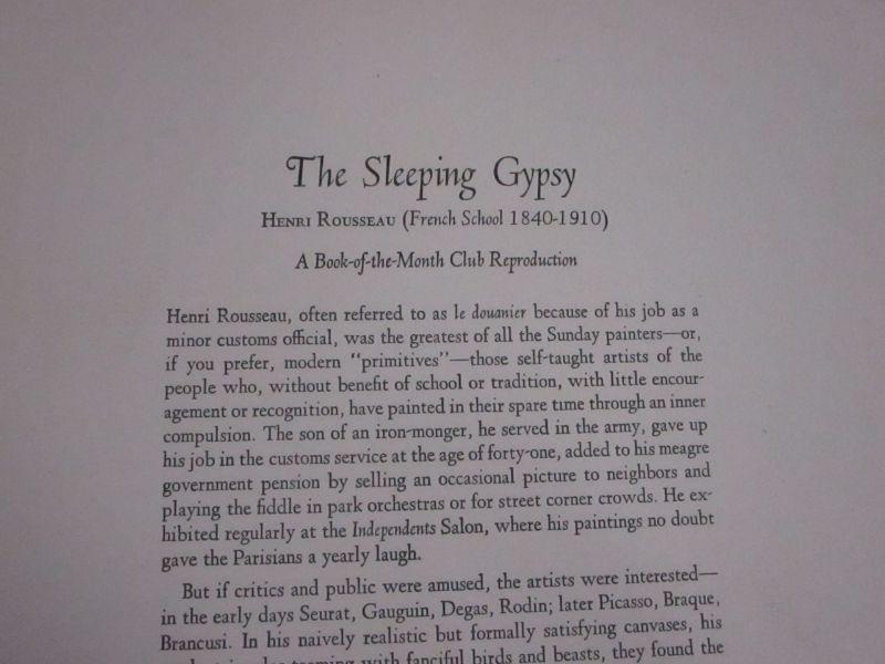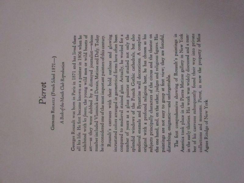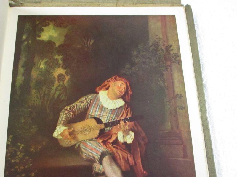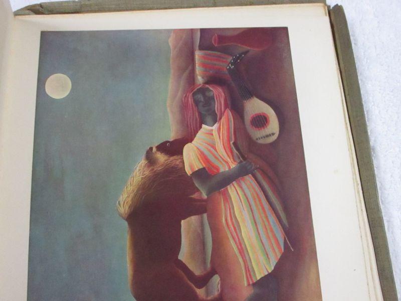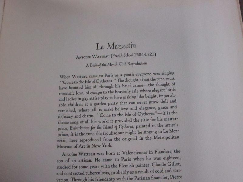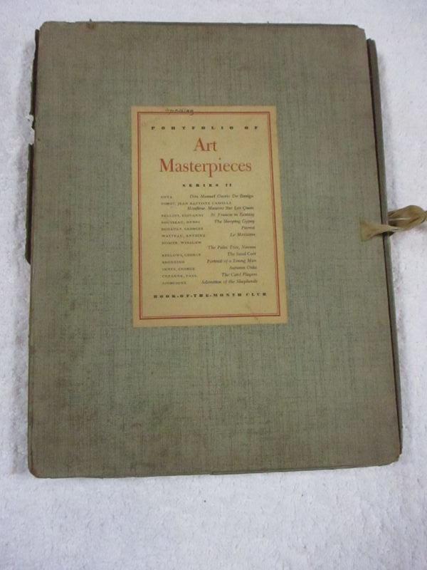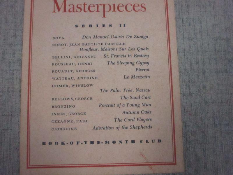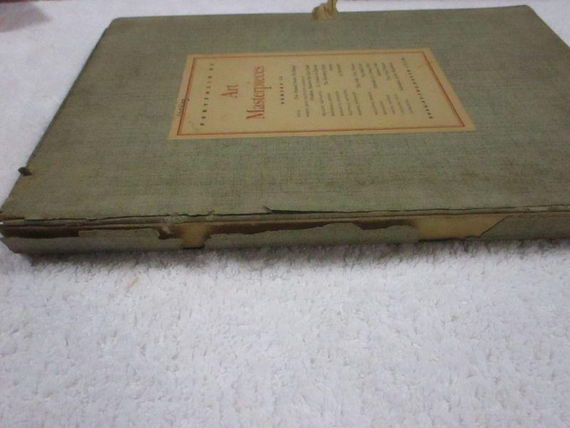 There are a bunch of prints inside little folders with detailed info on each one. Some of the artists are Goya, Rouault, Innes, Cezzane, Bellini, Homer, etc. The binding does have some damage