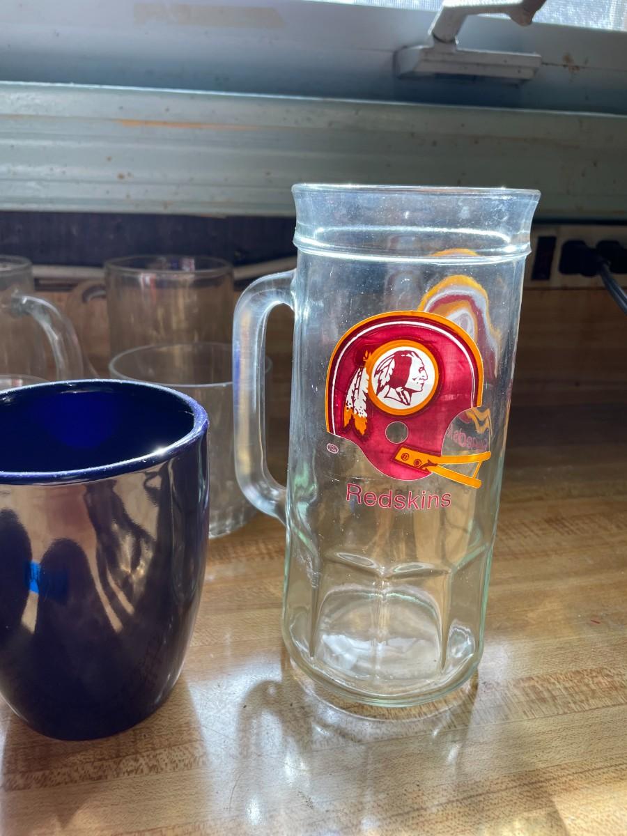 lot 79- set of (12) misc. glasses, vintage Redskins mug