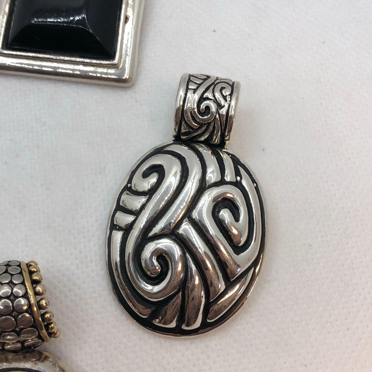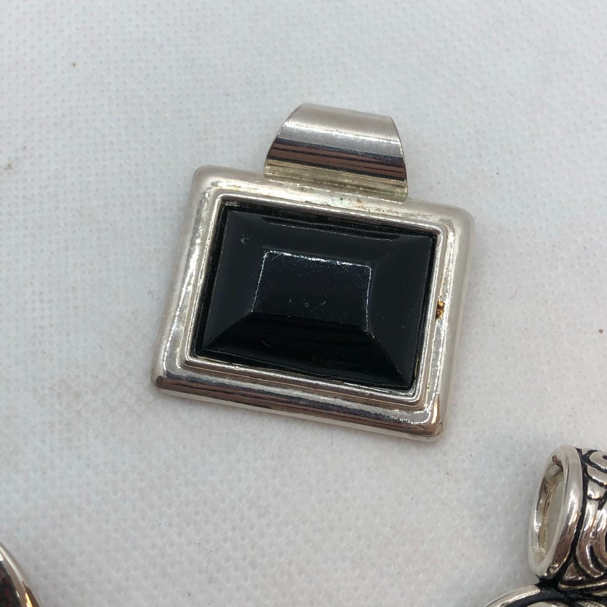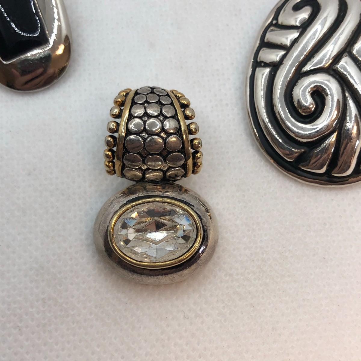 There is one set that is a pendant and clip-on earrings (on the left side). They look like they may be silverplate. All are in excellent condition, none are marked.
