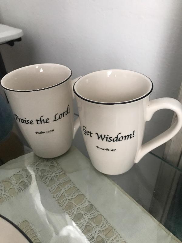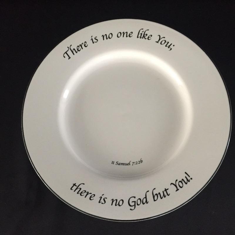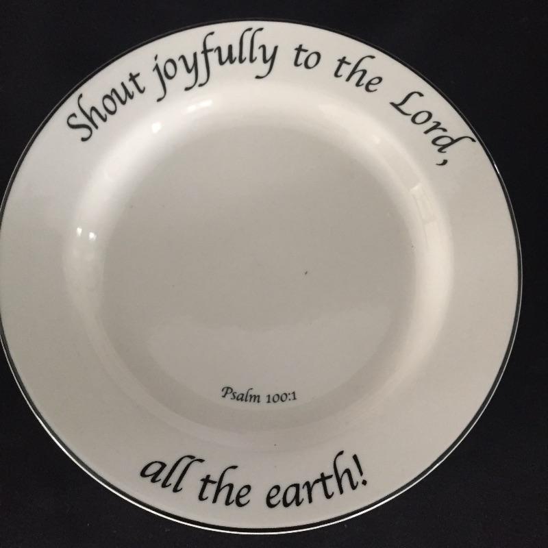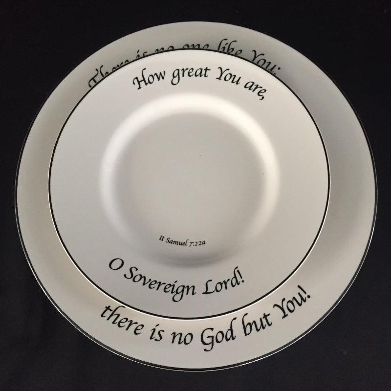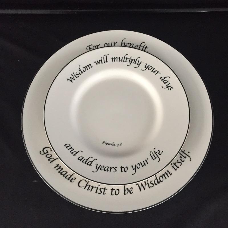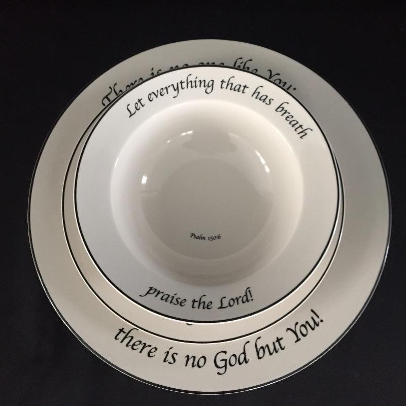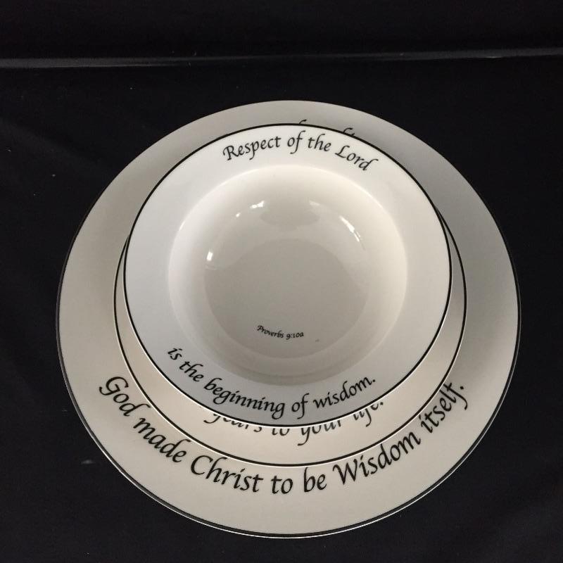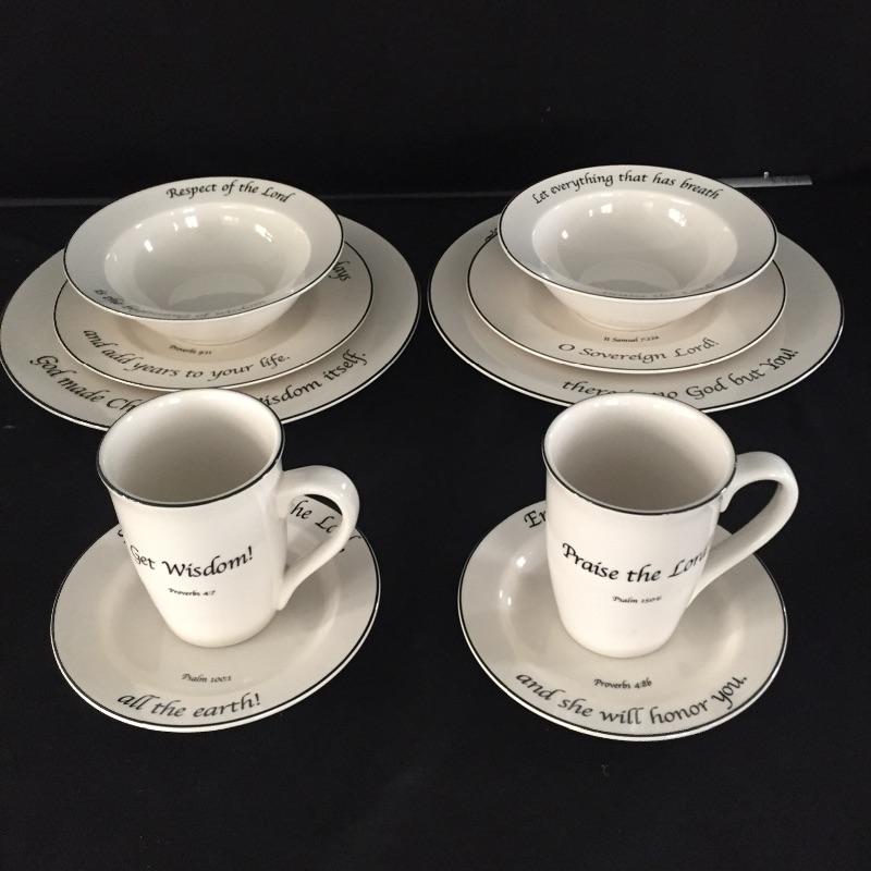 Uplifting set of two person dishes. Get your day started right with this set with spiritual sayings. Largest plate measures 11.25” D. Shipping Available