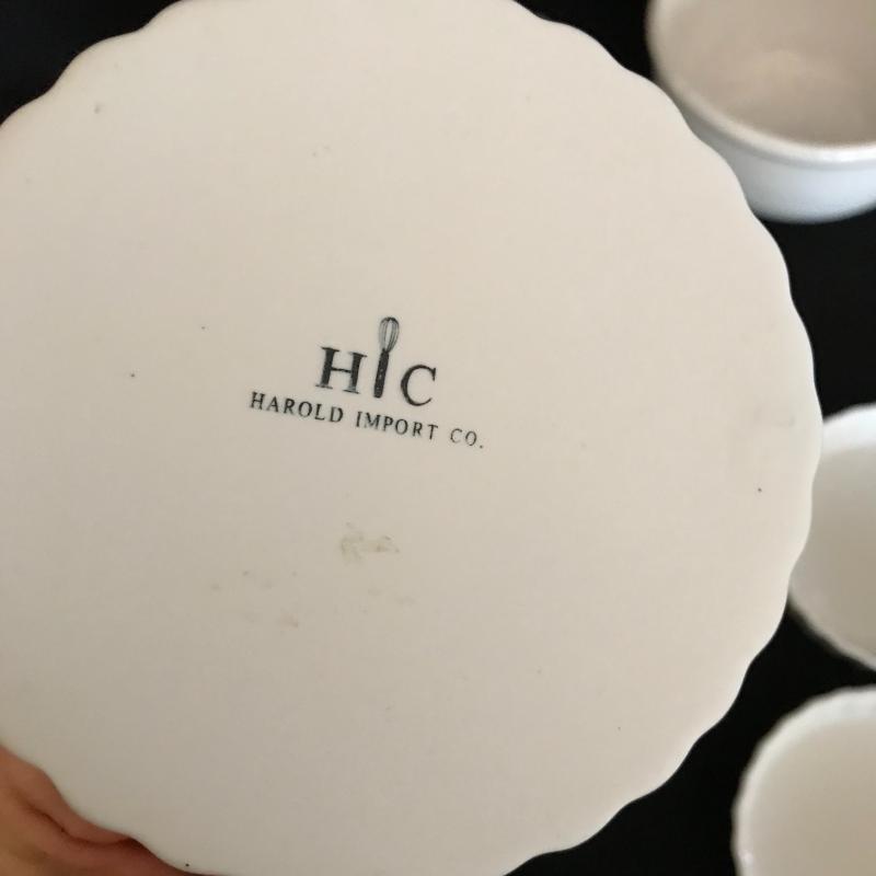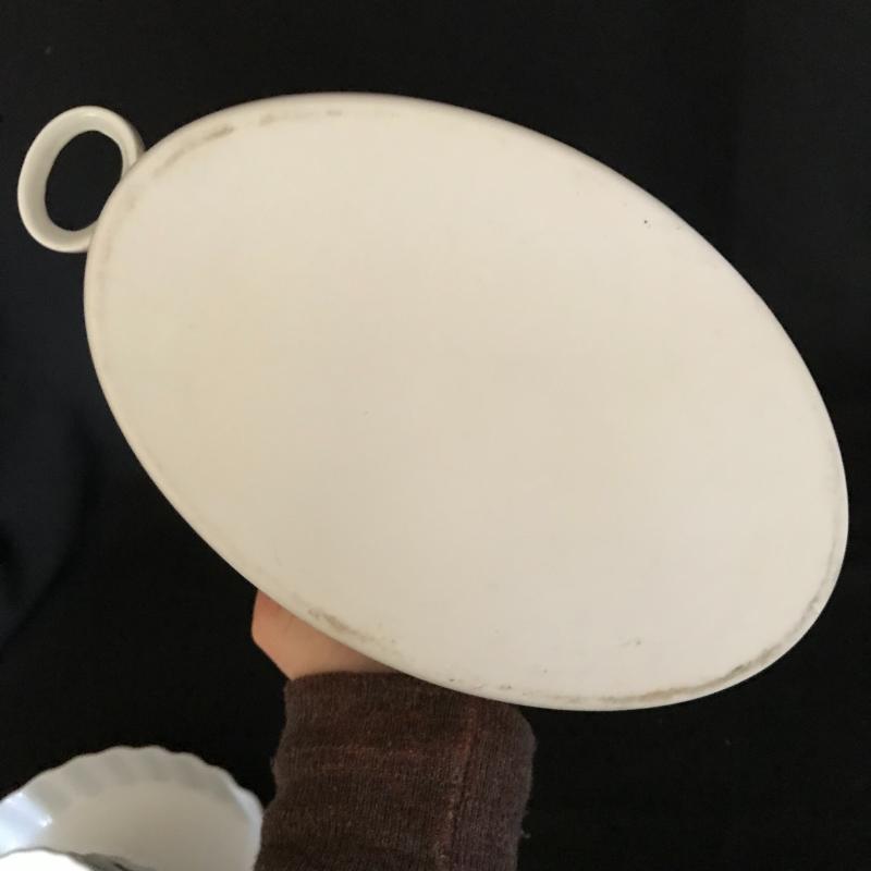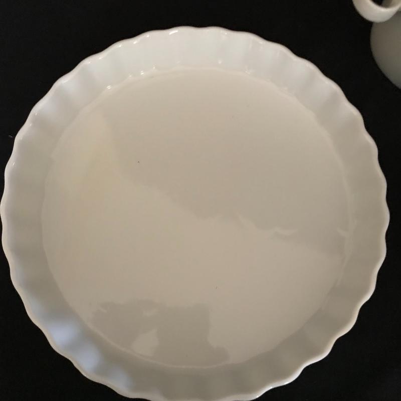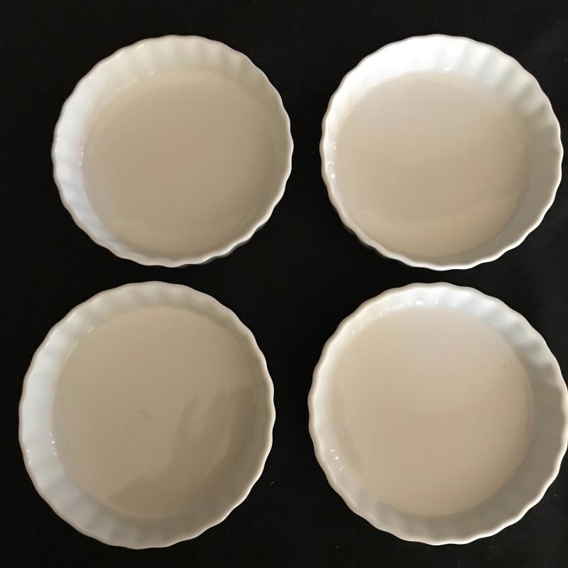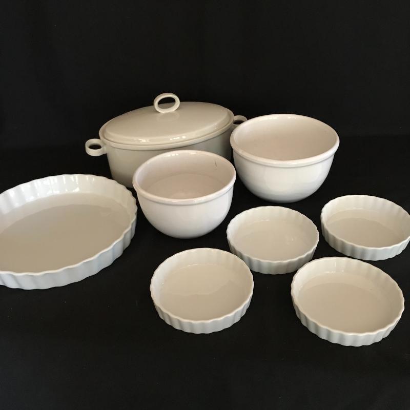 This lot includes one large pastry pan/pie plate, four tart pans, a pair of stacking bowls, and a lidded ceramic serving dish. Serving dish is approx. 12” across x 6” tall, with lid. Shipping available or local pickup in Flat Rock, NC.